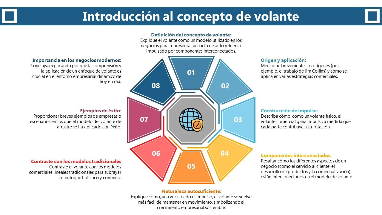 Visualice ciclos económicos que se refuerzan a sí mismos con esta plantilla de PowerPoint con diagrama de volante de 8 elementos. Perfecto para presentaciones de estrategias de crecimiento, presentaciones para inversores y planificación operativa.