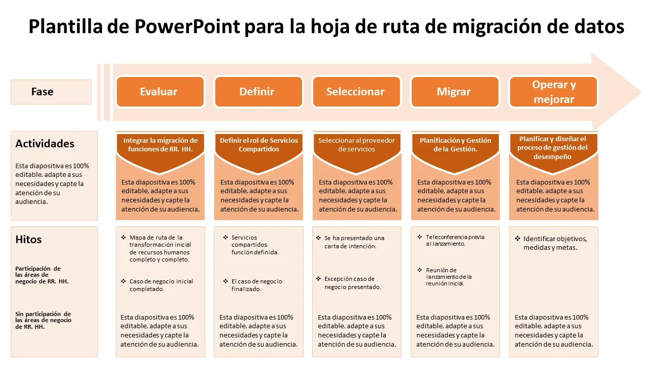 Plantilla de PowerPoint de hoja de ruta de migración de datos