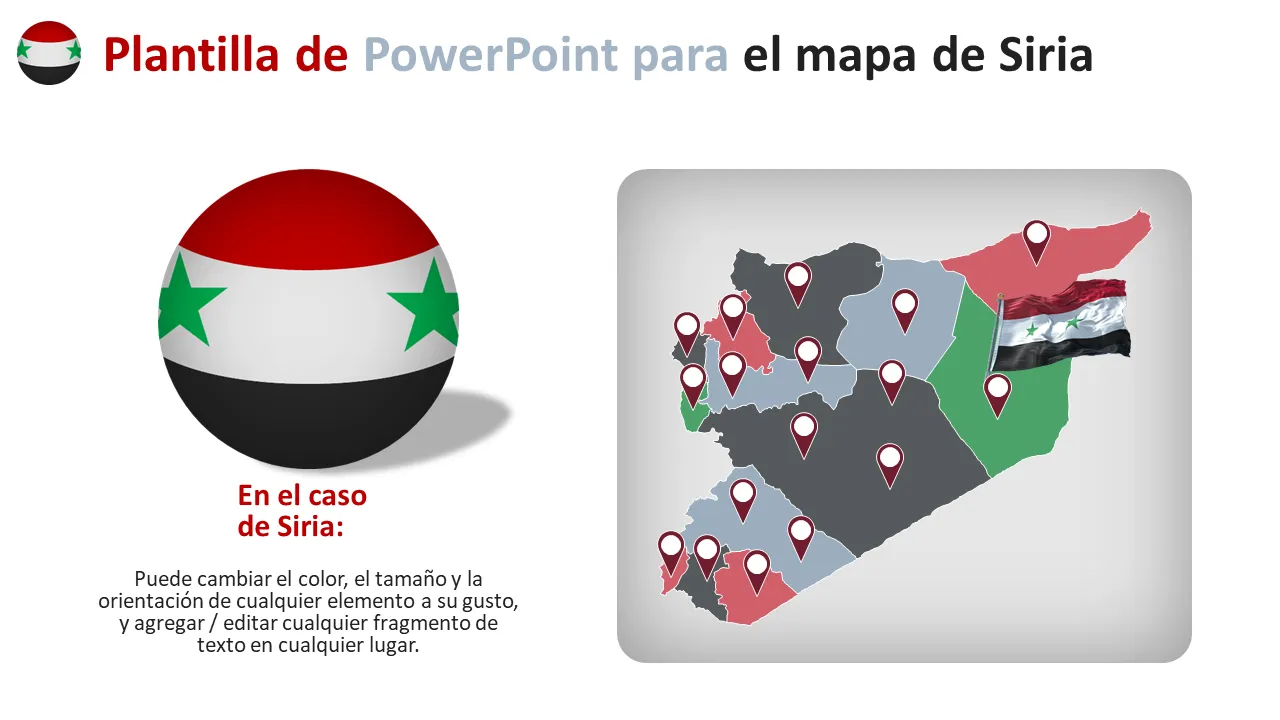 Plantilla profesional de PowerPoint con mapa de Damasco, Siria, diseñada para presentaciones de estrategia empresarial. Visualice análisis regionales, oportunidades de mercado y planificación operativa con esta herramienta infográfica personalizable.