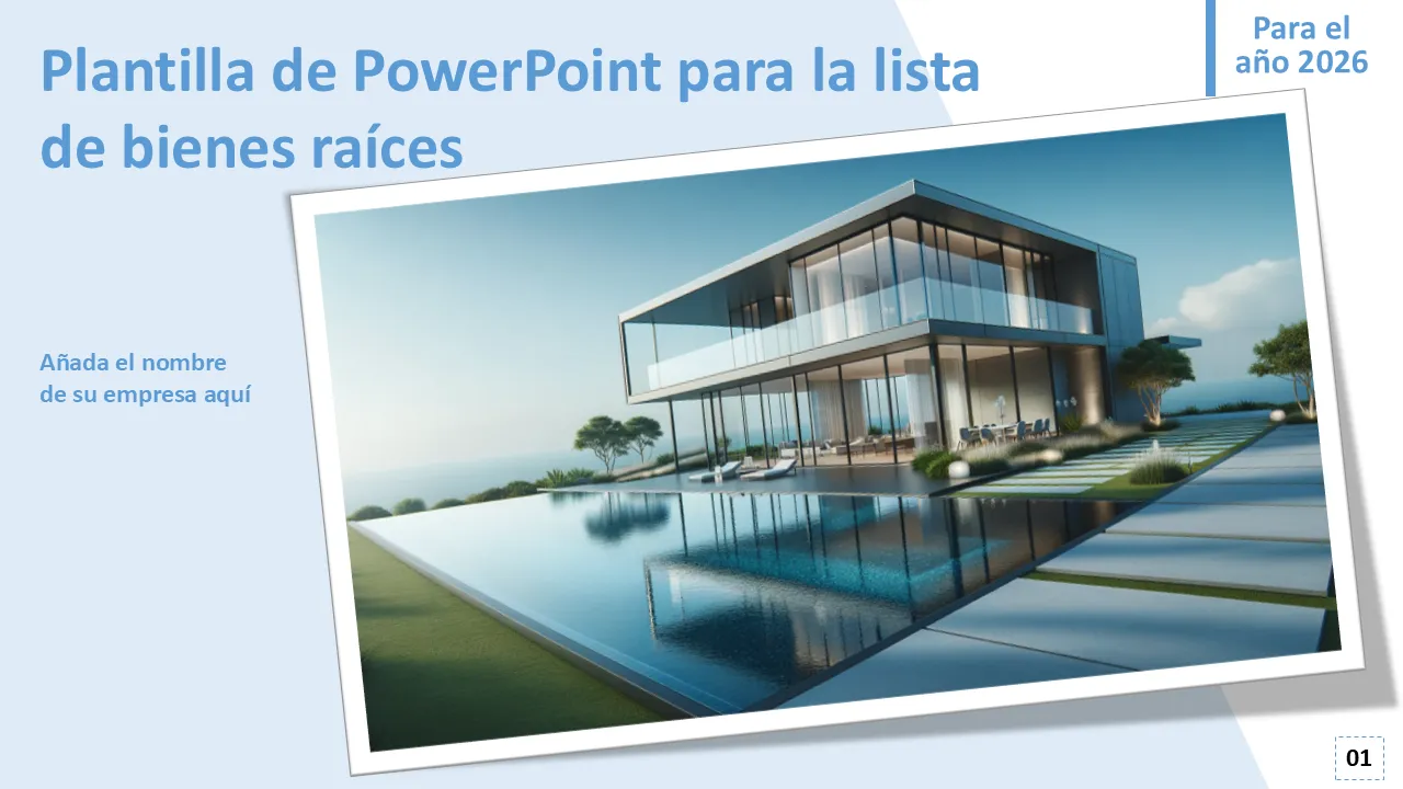 Una plantilla profesional de Powerpoint para listado de bienes raíces para profesionales de bienes raíces y promotores inmobiliarios. Ideal para presentaciones de inversiones, listados de propiedades y presentaciones de análisis de mercado. Diseño limpio y moderno.