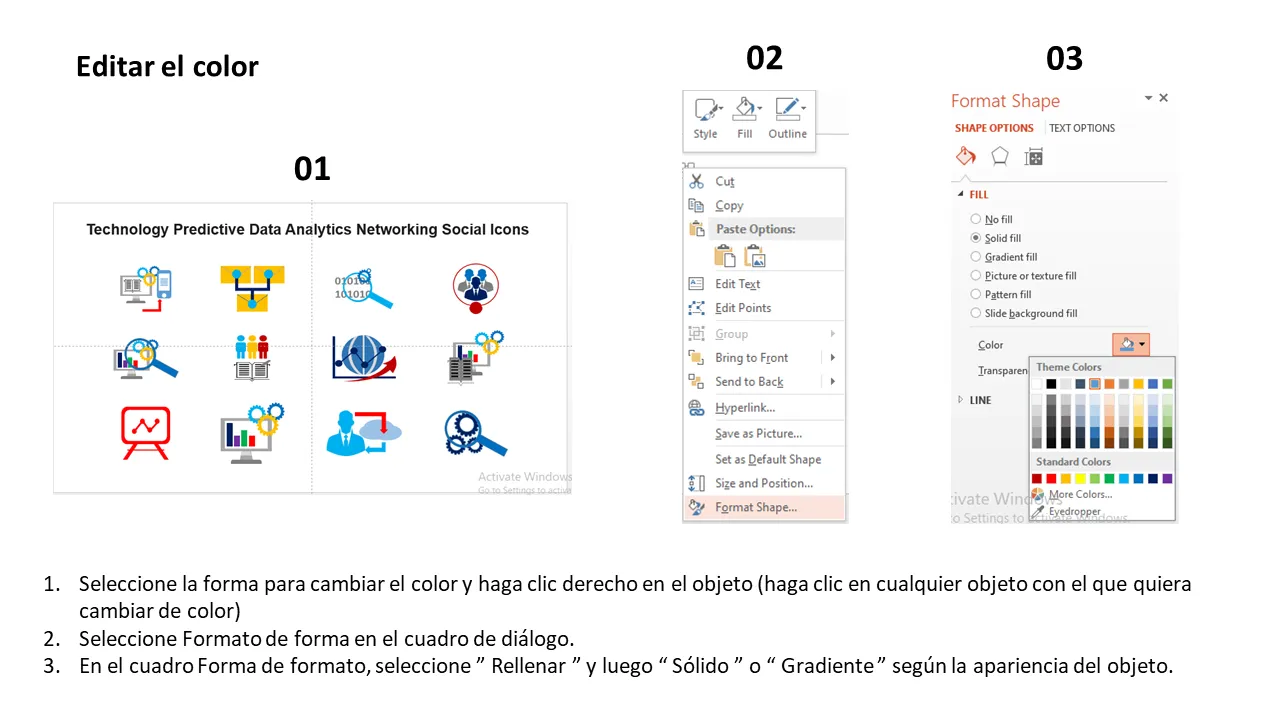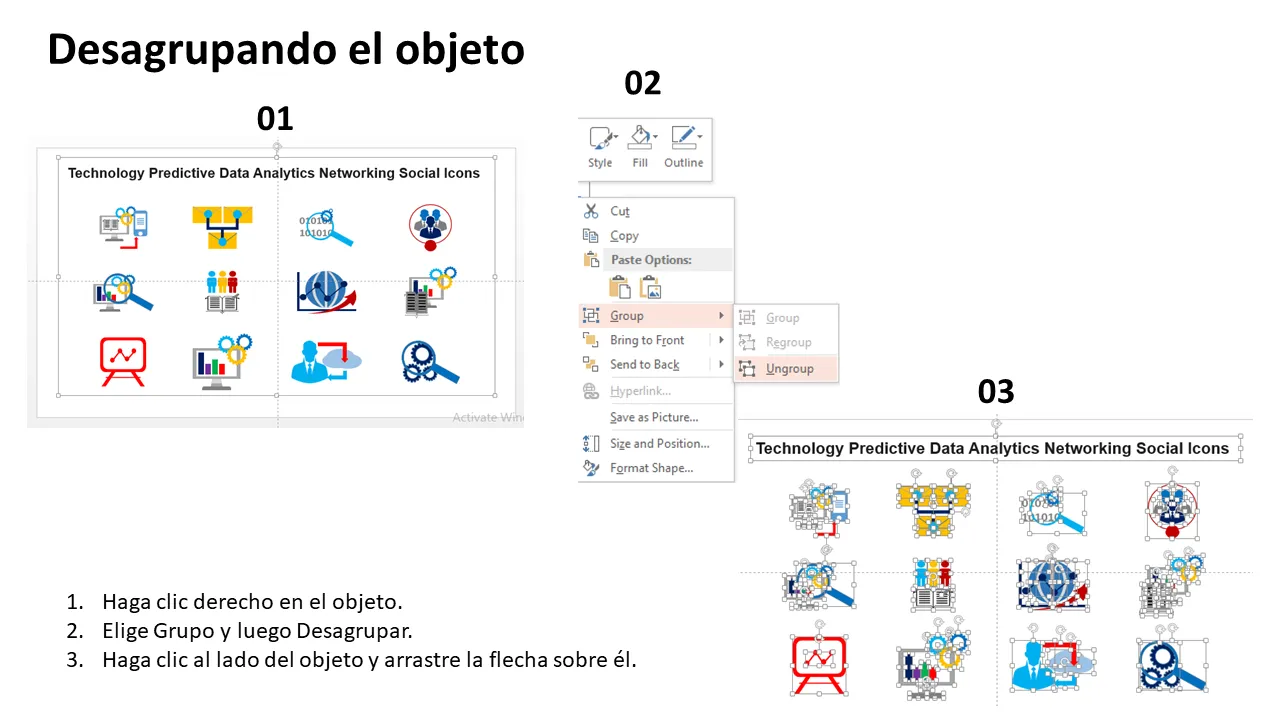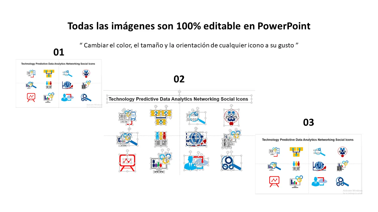 - Iconos escalables tanto para infografías pequeñas como para diapositivas de presentación grandes
