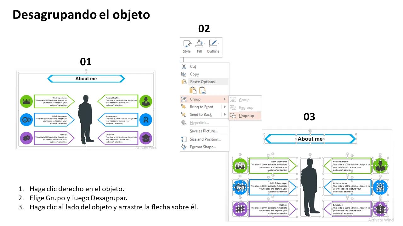Explicación de la plantilla de presentación Acerca de mí