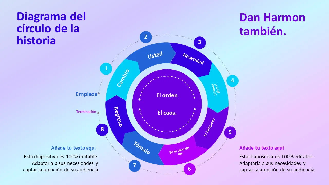 Explicación de la plantilla de PowerPoint del diagrama del círculo de la historia de Dan Harmon