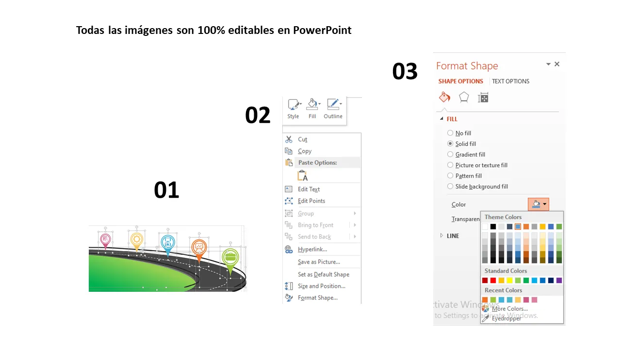 - Compatible con PowerPoint 2016 y versiones posteriores, incluido Microsoft 365