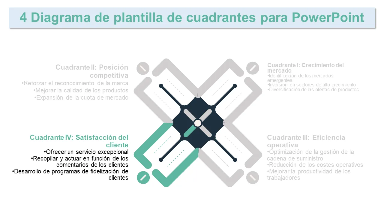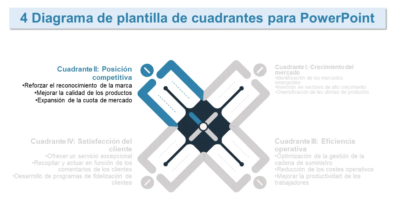 Plantilla de PowerPoint con diagrama de estrategia empresarial de 4 cuadrantes