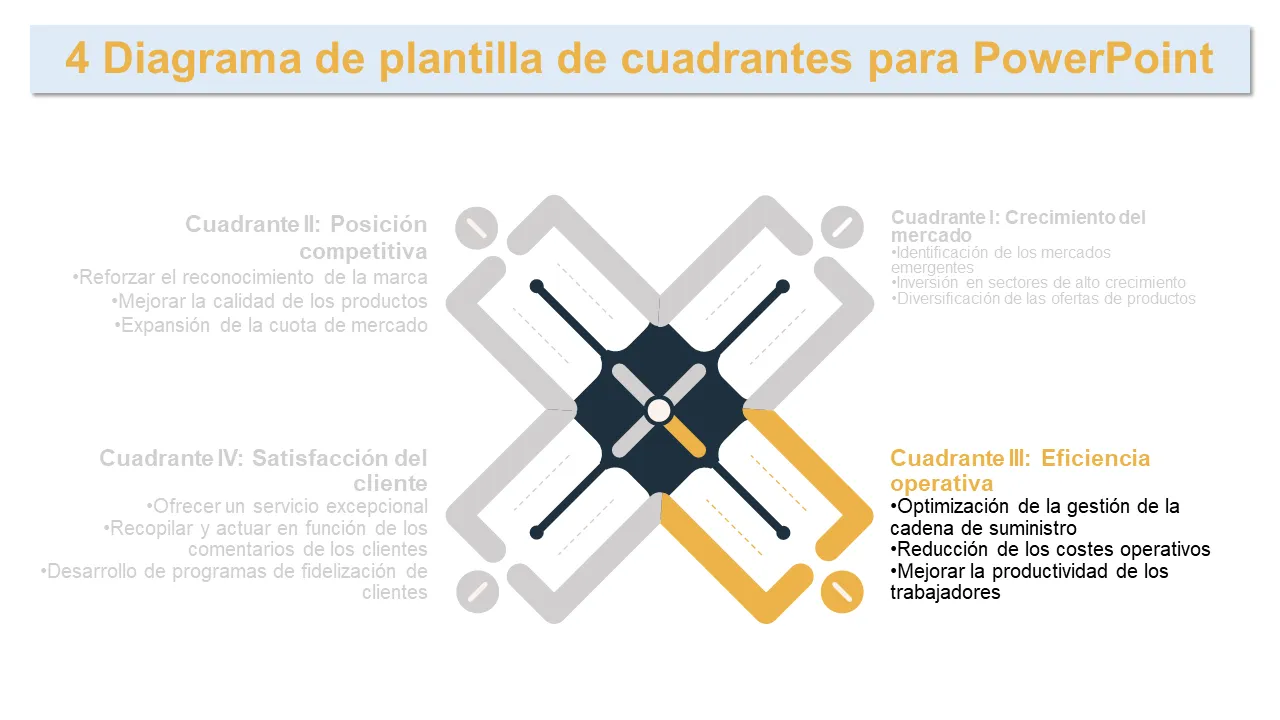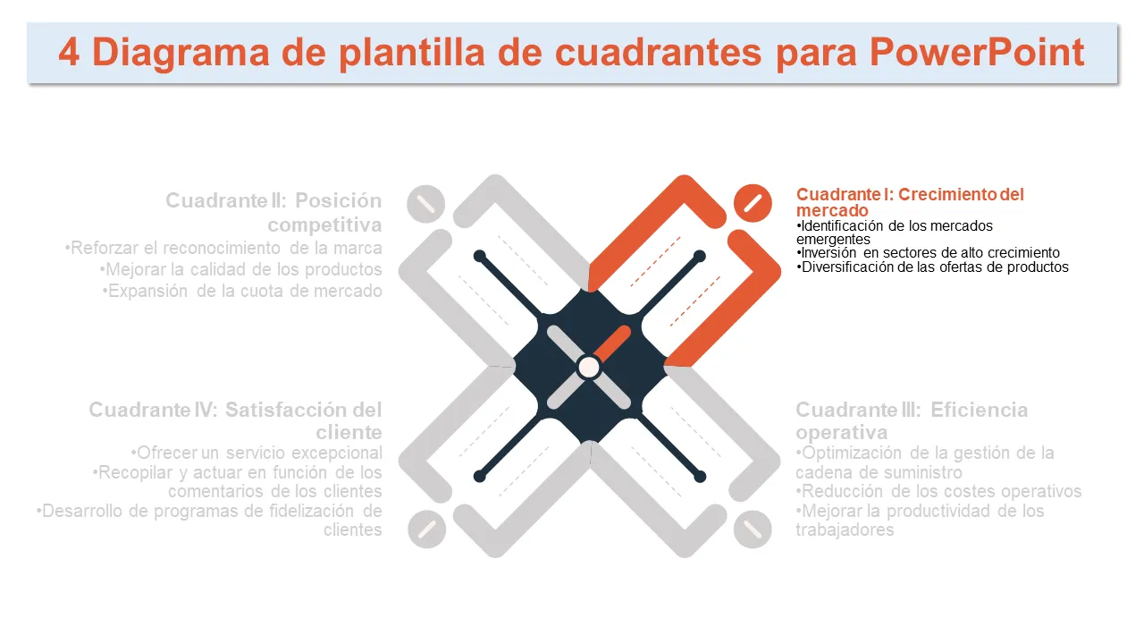 Características de Diagrama de plantilla de 4 cuadrantes para modelo de diapositivas de PowerPoint