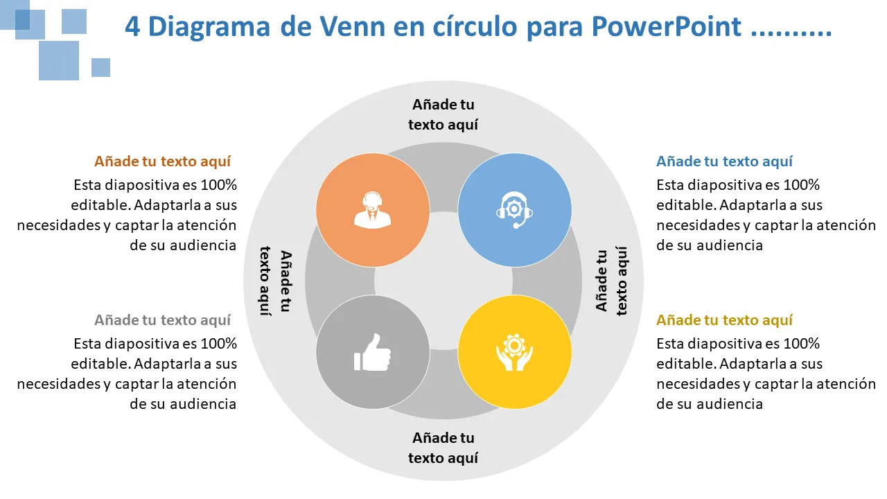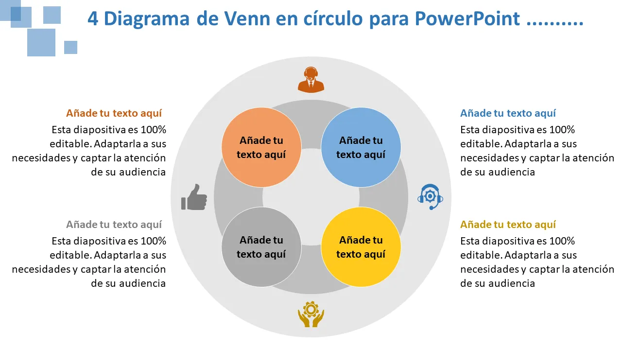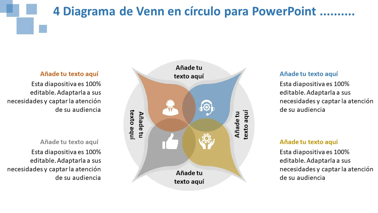 Explicación de la plantilla de PowerPoint del diagrama de Venn de 4 círculos