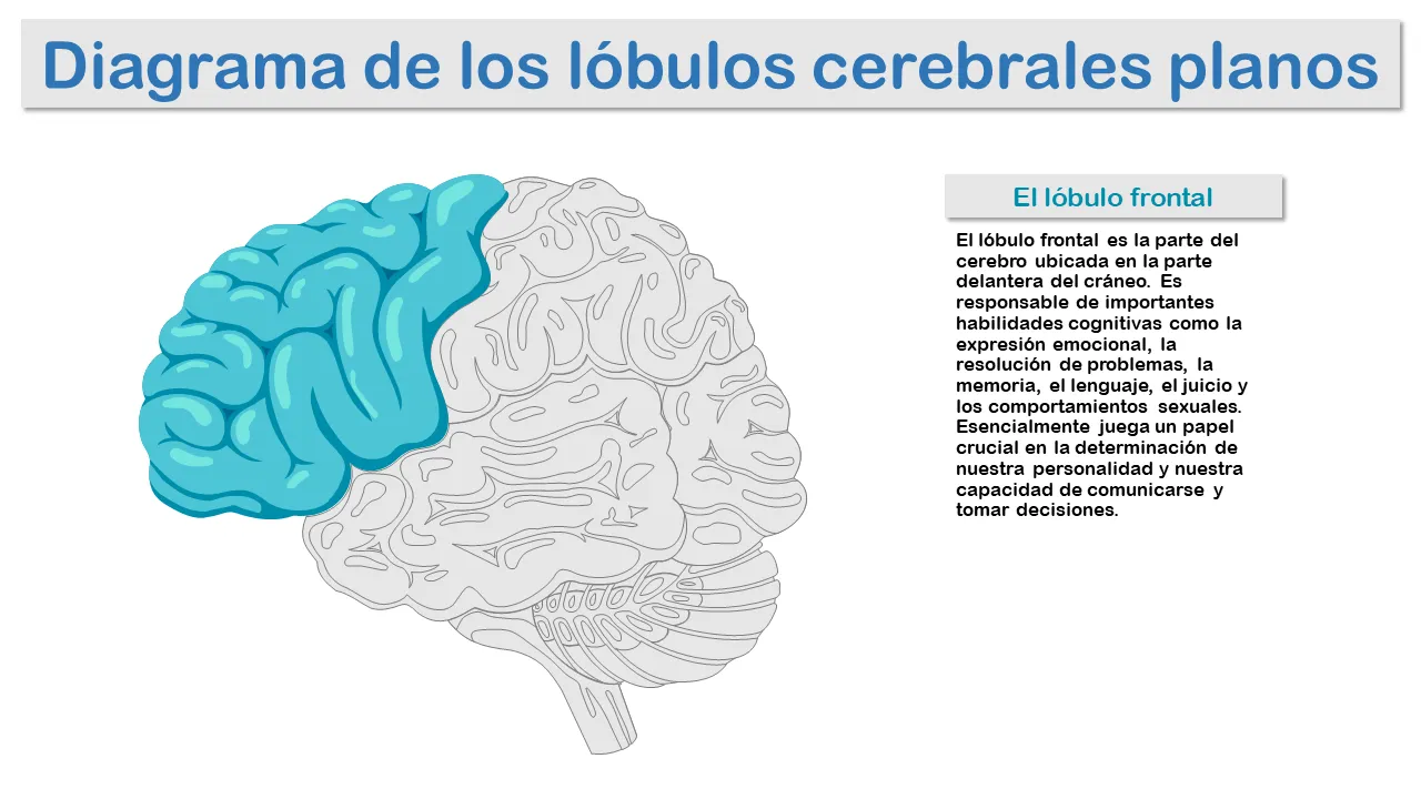 - Diagrama cerebral transversal prediseñado con lóbulos etiquetados para una entrega educativa rápida