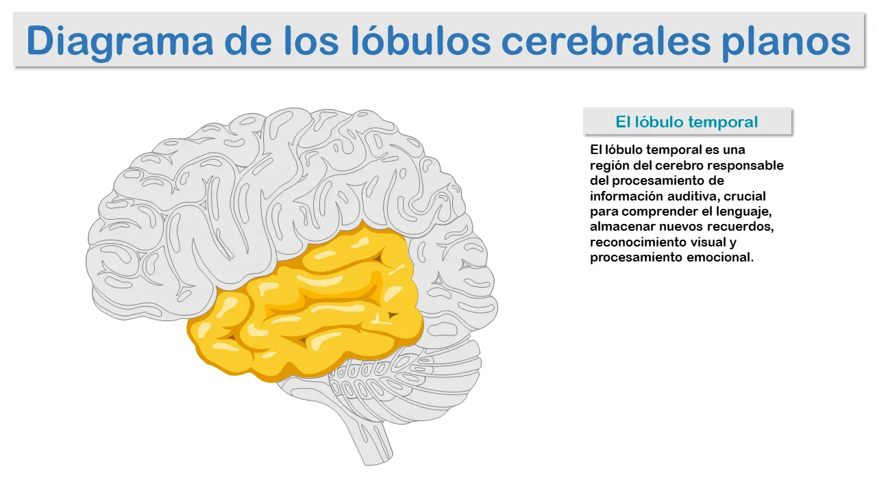 - Iconos integrados para cada lóbulo cerebral para reforzar el aprendizaje visual y simplificar conceptos complejos
