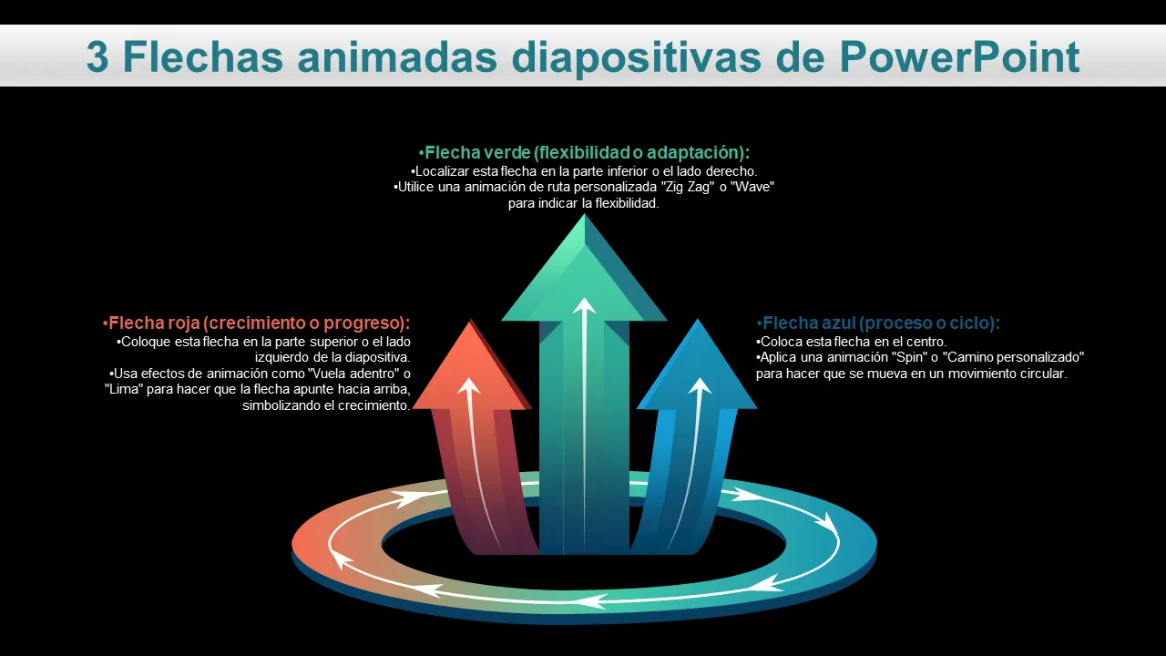 Explicación de la plantilla de PowerPoint con 3 flechas animadas
