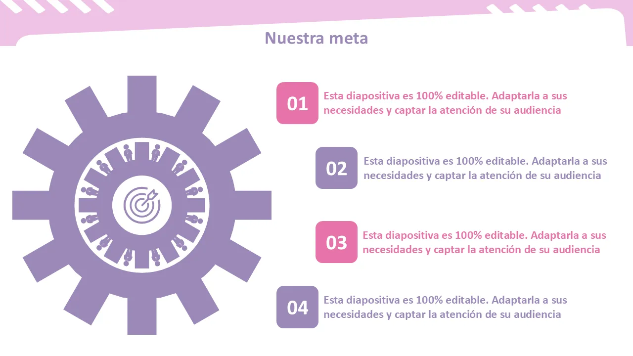 Esta plantilla de PowerPoint diseñada profesionalmente presenta conceptos de estrategia de marketing a través de imágenes estructuradas, tipografía limpia y un lenguaje de diseño moderno. Ayuda a los presentadores a comunicar ideas complejas con claridad e impacto, lo que lo hace ideal para salas de juntas, reuniones virtuales y presentaciones de conferencias. La plantilla equilibra el atractivo visual con la profundidad informativa, lo que garantiza que cada diapositiva ofrezca el máximo valor a la audiencia.
