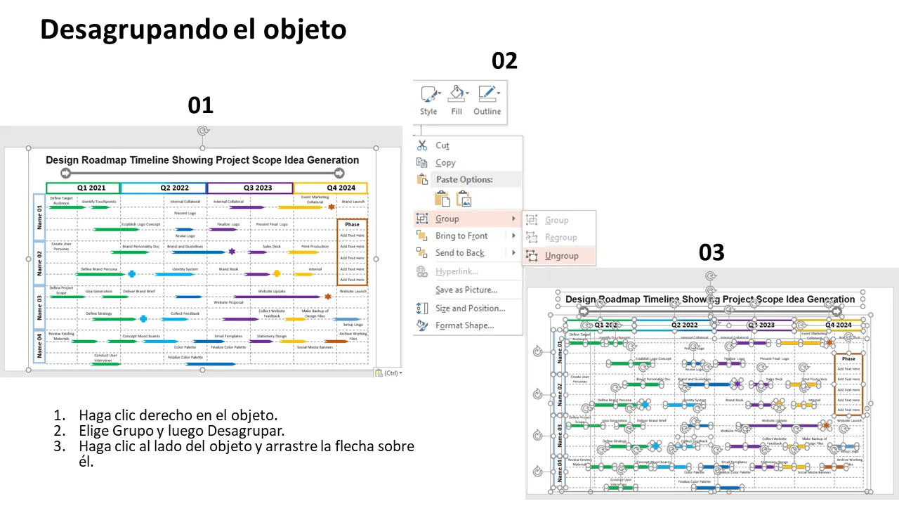 - Estructura de diapositivas flexible para adaptarse a diferentes duraciones de proyectos y tamaños de equipos