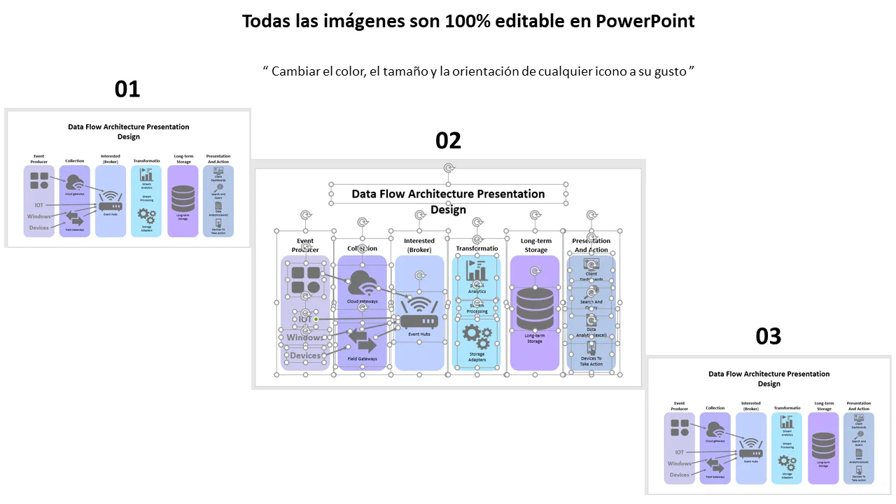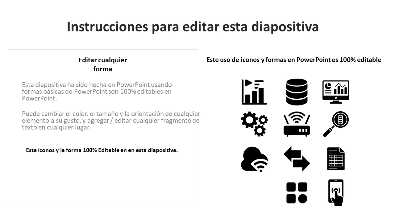 - Incluye texto de marcador de posición e íconos para una rápida personalización