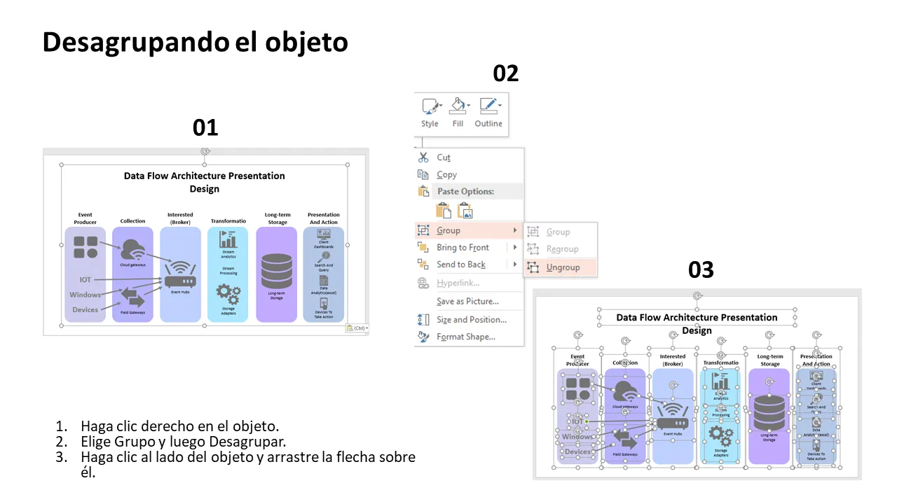 Explicación del diseño de la presentación de la arquitectura de flujo de datos