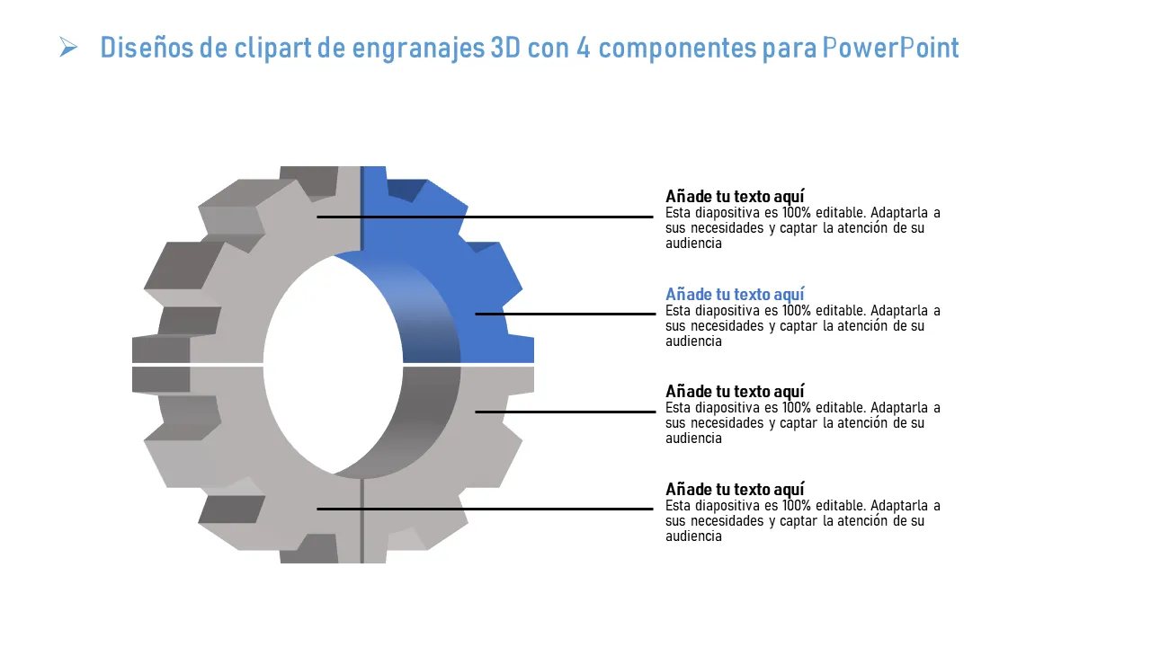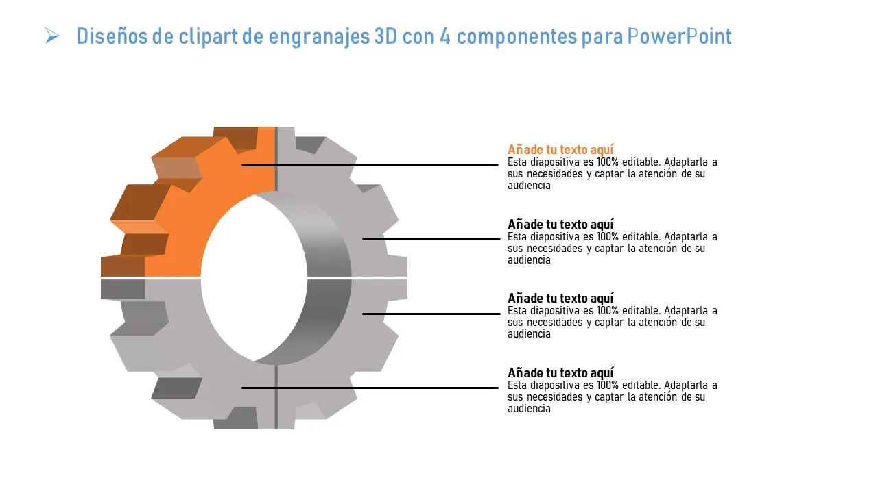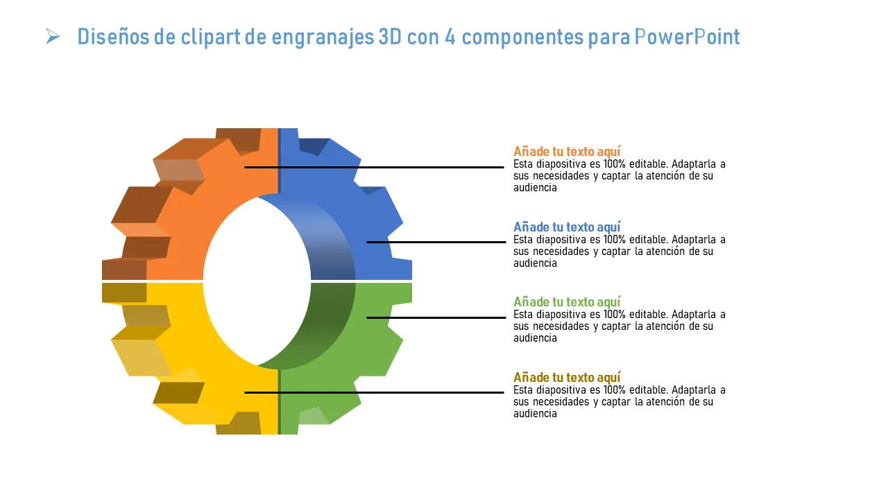 FAQ - Diseños de imágenes prediseñadas de engranajes 3D con 4 componentes para PowerPoint