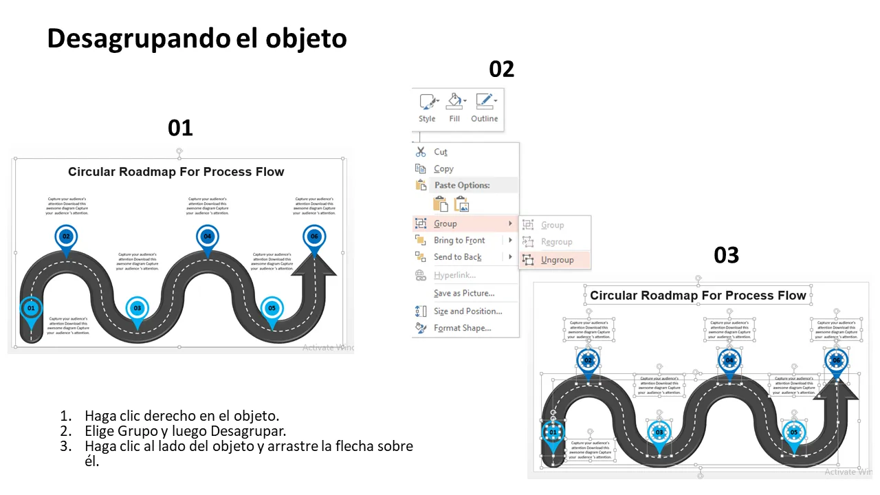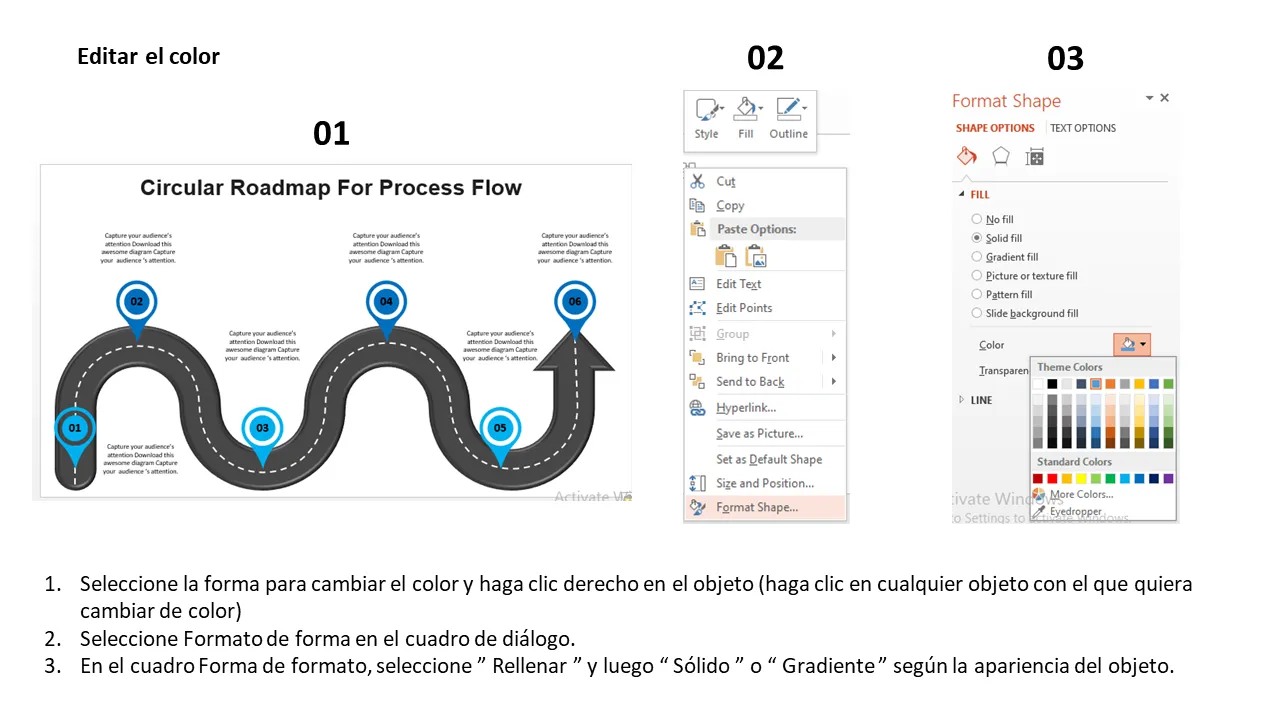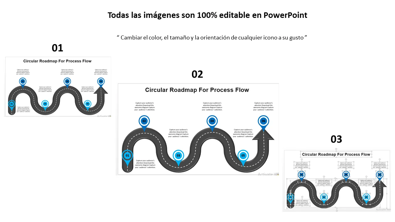 Explicación de la plantilla de PowerPoint de hoja de ruta de flujo de proceso circular