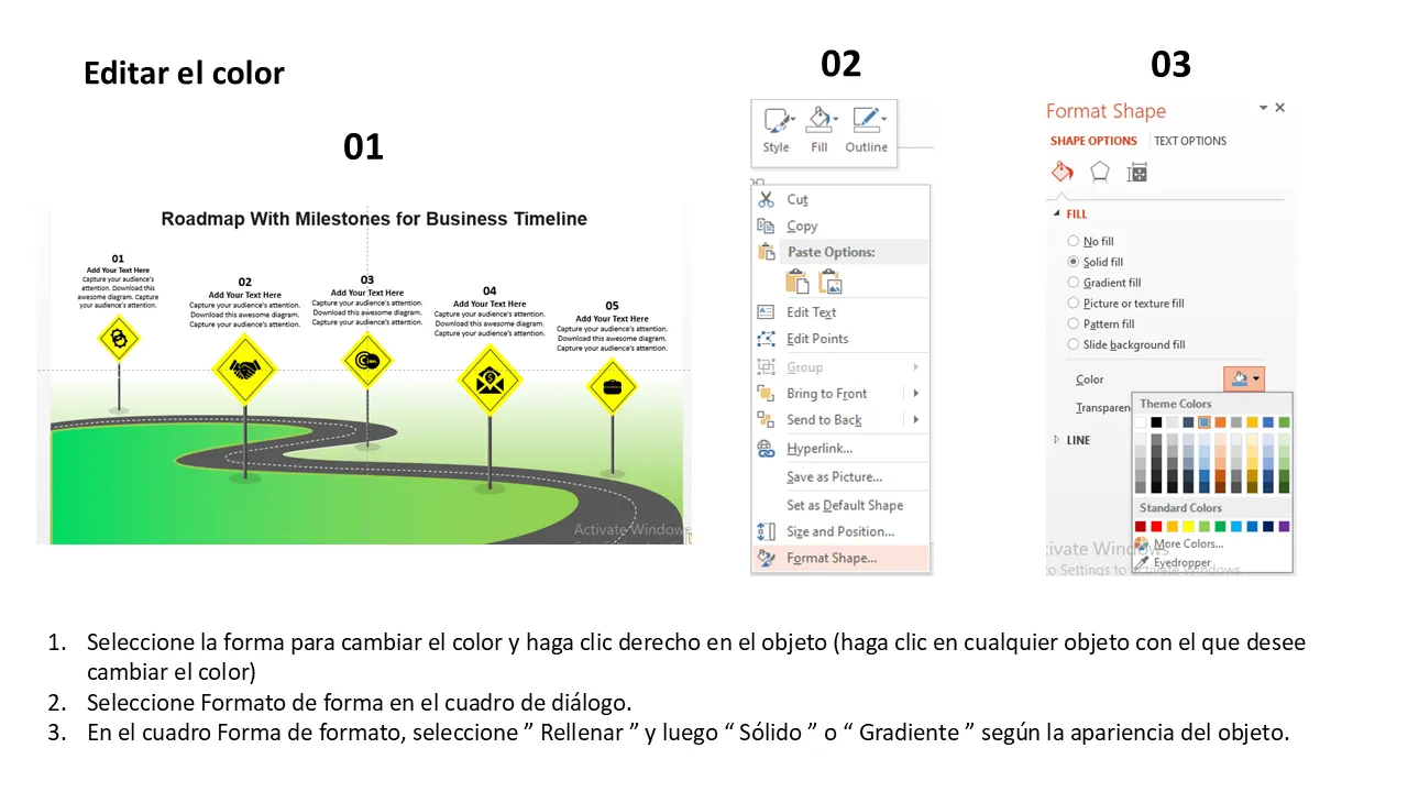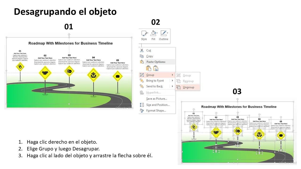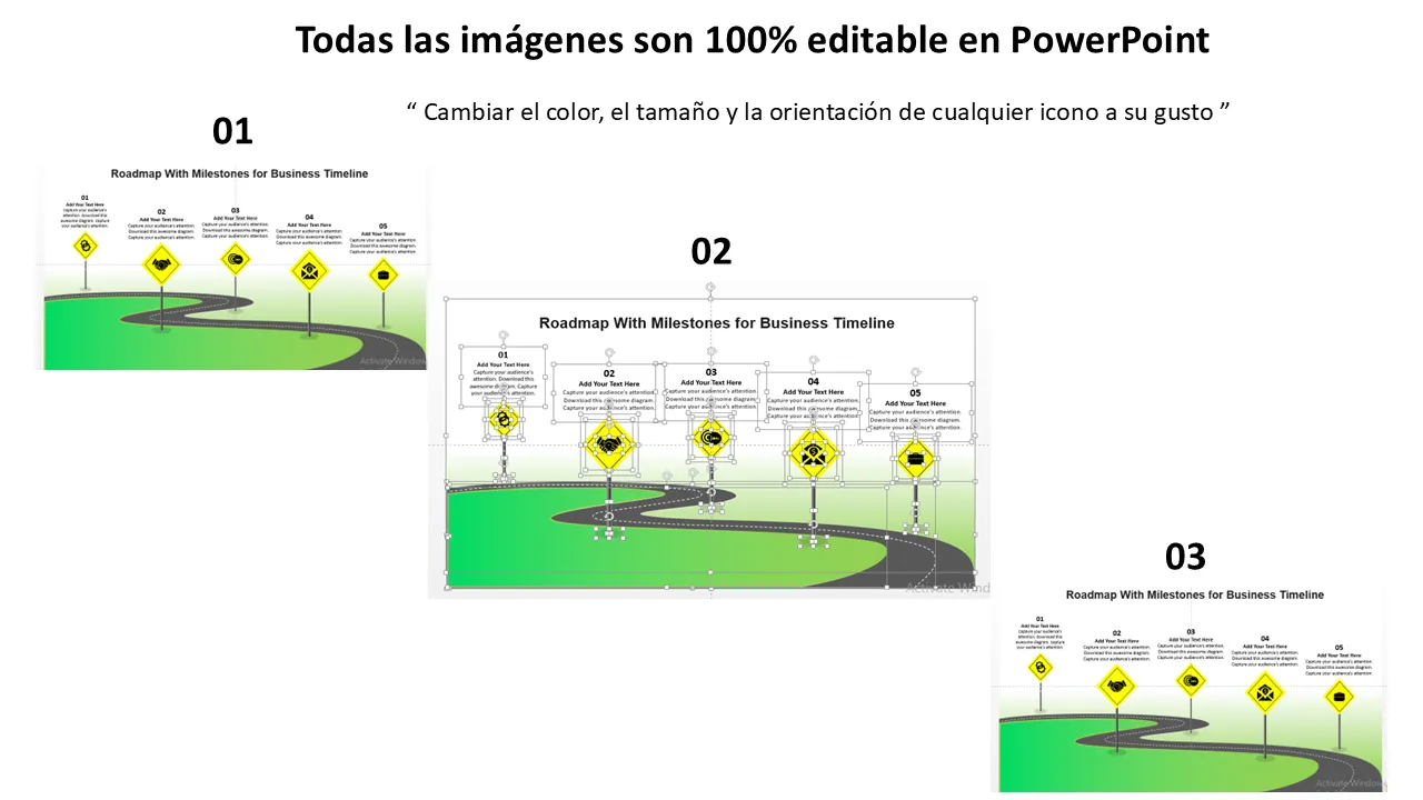 - Marcadores de hitos editables con marcadores de posición de texto para entregables clave