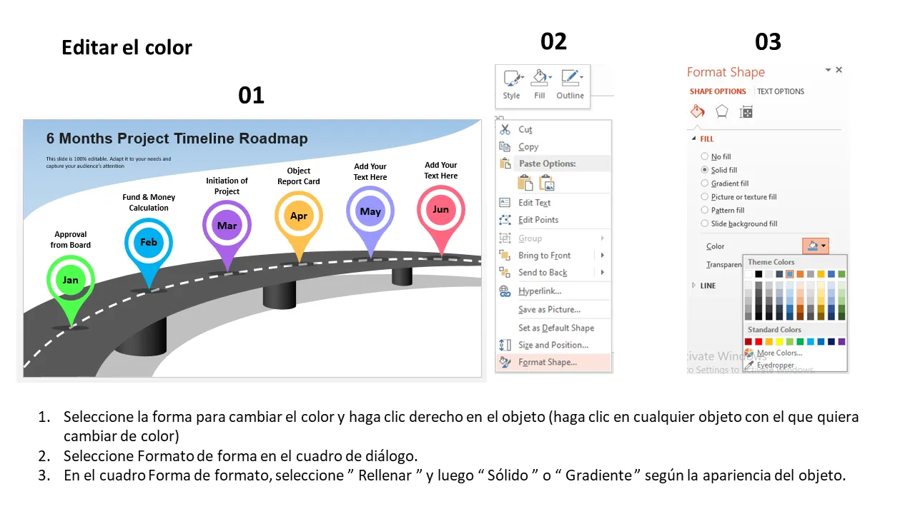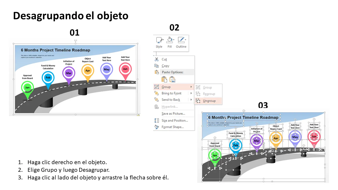 Explicación de la hoja de ruta del cronograma del proyecto de 6 meses
