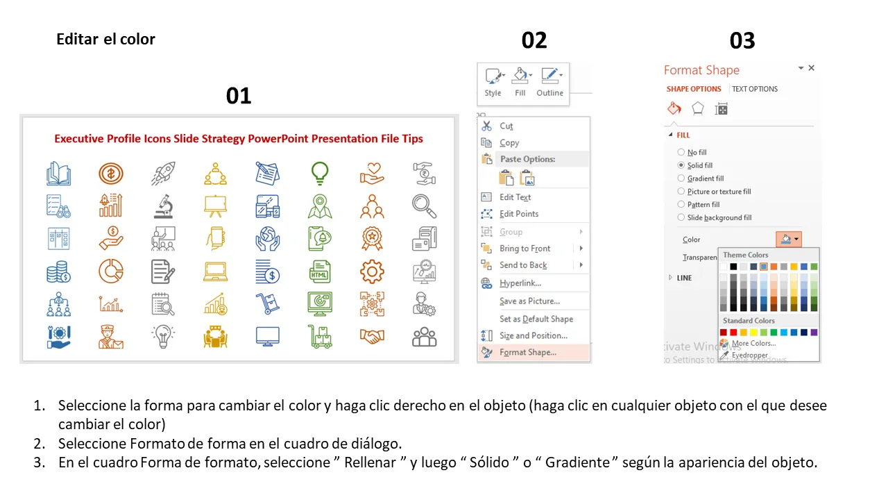 Características de Iconos De Perfil Ejecutivo Diapositiva Estrategia Presentación Powerpoint Archivo Consejos