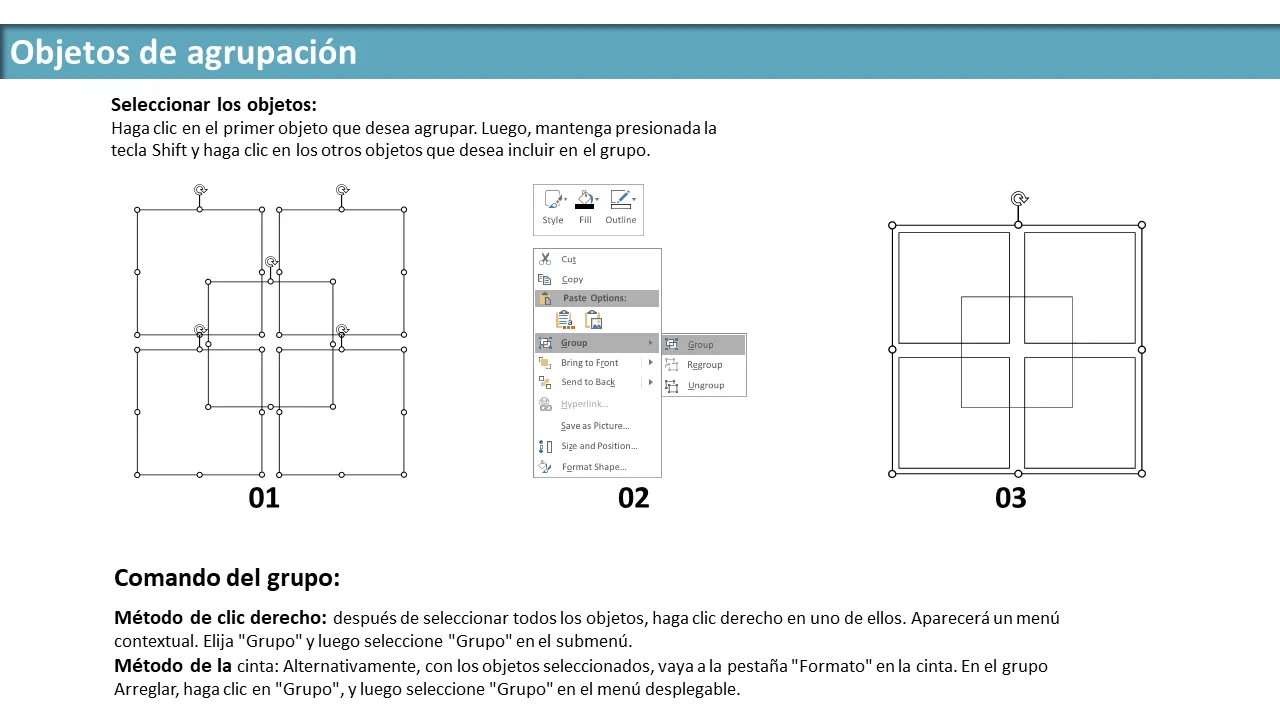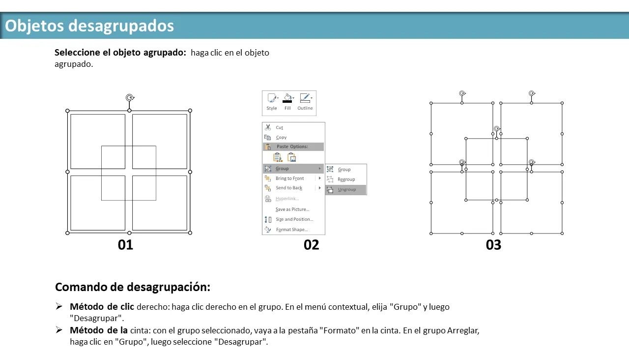 - Instrucciones de agrupación y desagrupación para una fácil personalización de elementos