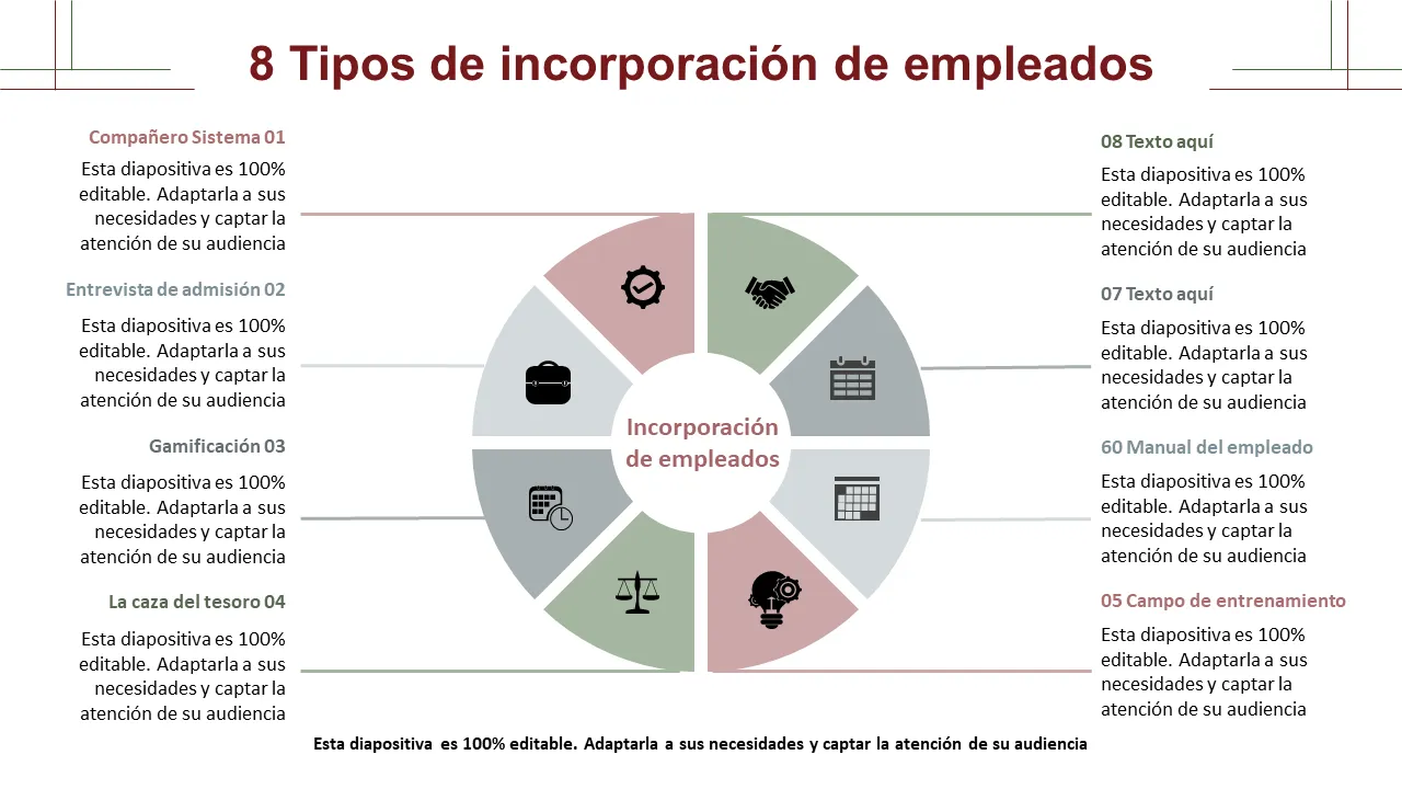 Esta plantilla la utilizan directores de recursos humanos, gerentes de talentos y líderes de equipos que presentan planes de desarrollo de empleados, reestructuración organizacional y estrategias de gestión del desempeño. Es ideal para sesiones de incorporación, revisiones de recursos humanos y talleres de liderazgo. Industrias como la tecnología, las finanzas, la atención médica y la educación se benefician de su claridad y diseño profesional.