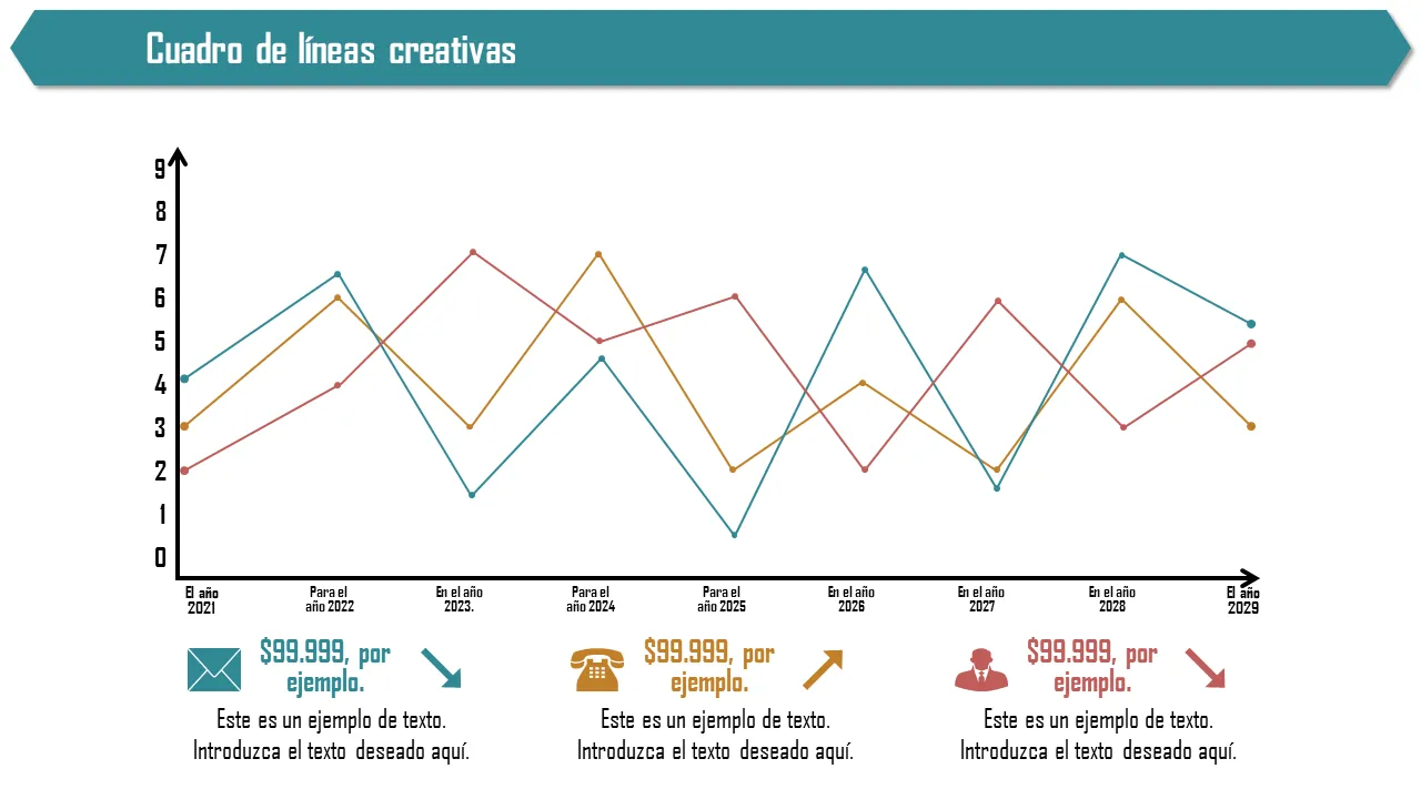 - Gráficos animados de barras, líneas, columnas, circulares y de anillos prediseñados para uso inmediato