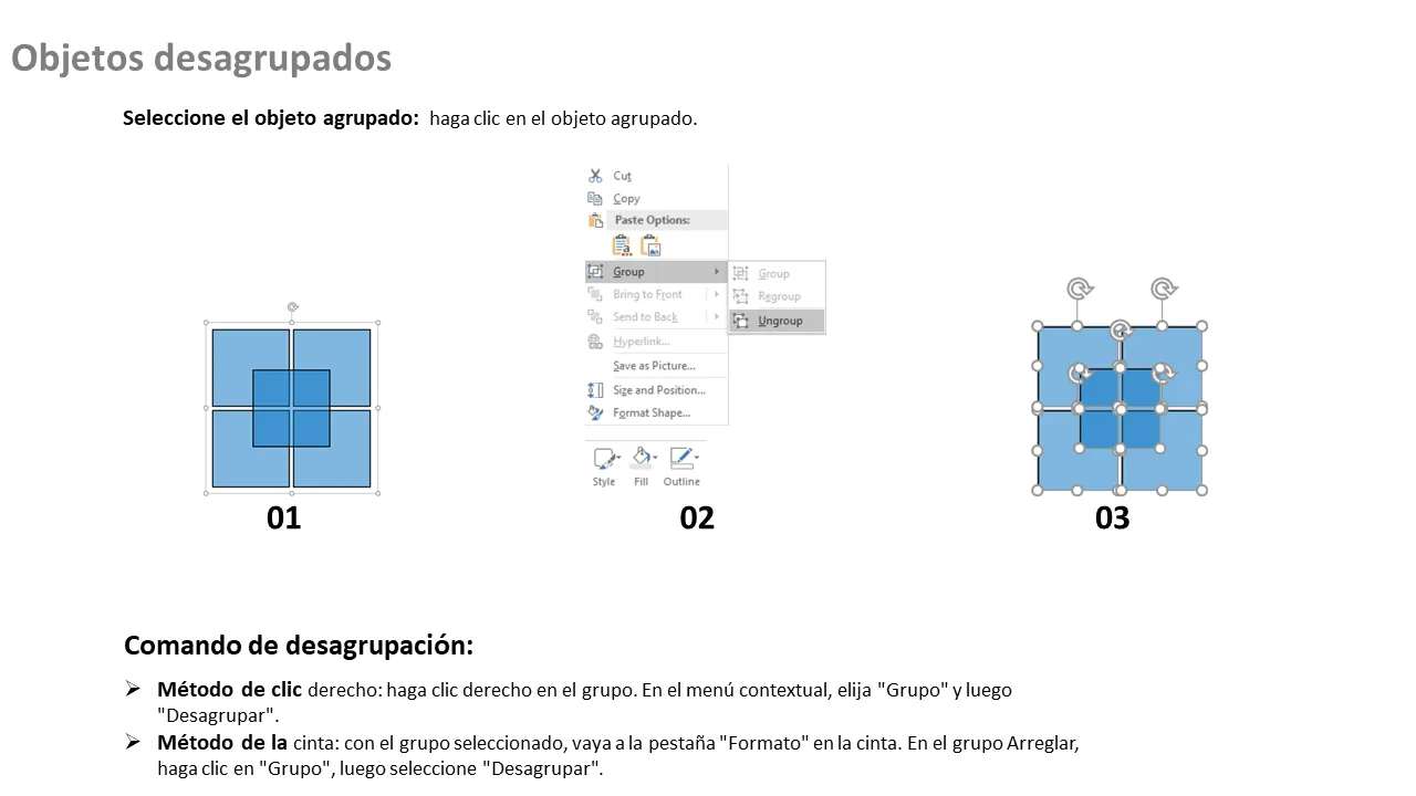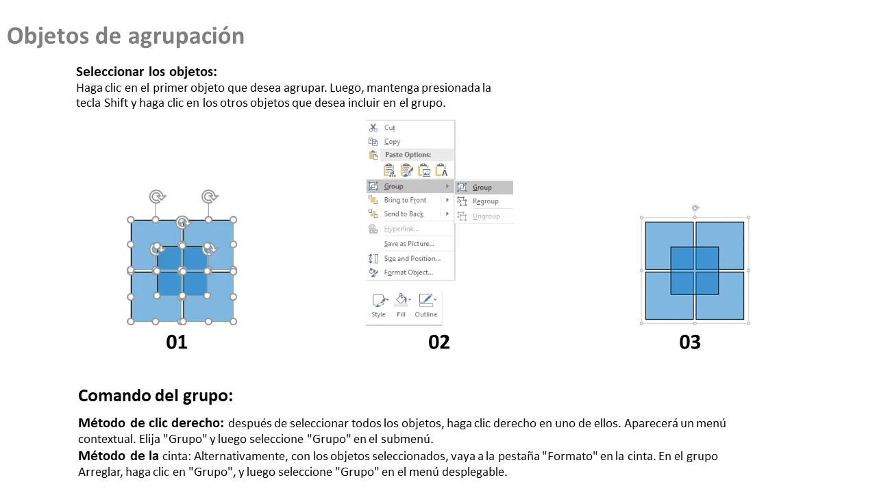 - Incluye notas instructivas para agrupar elementos sin alterar el diseño