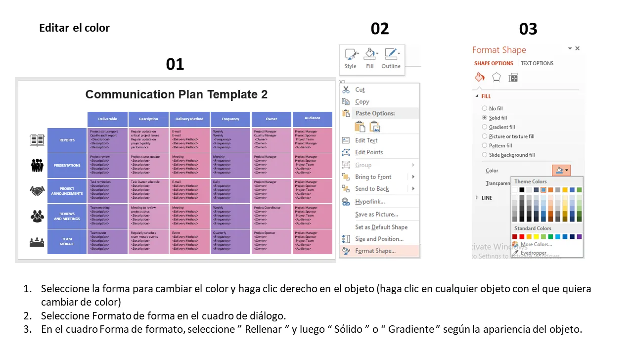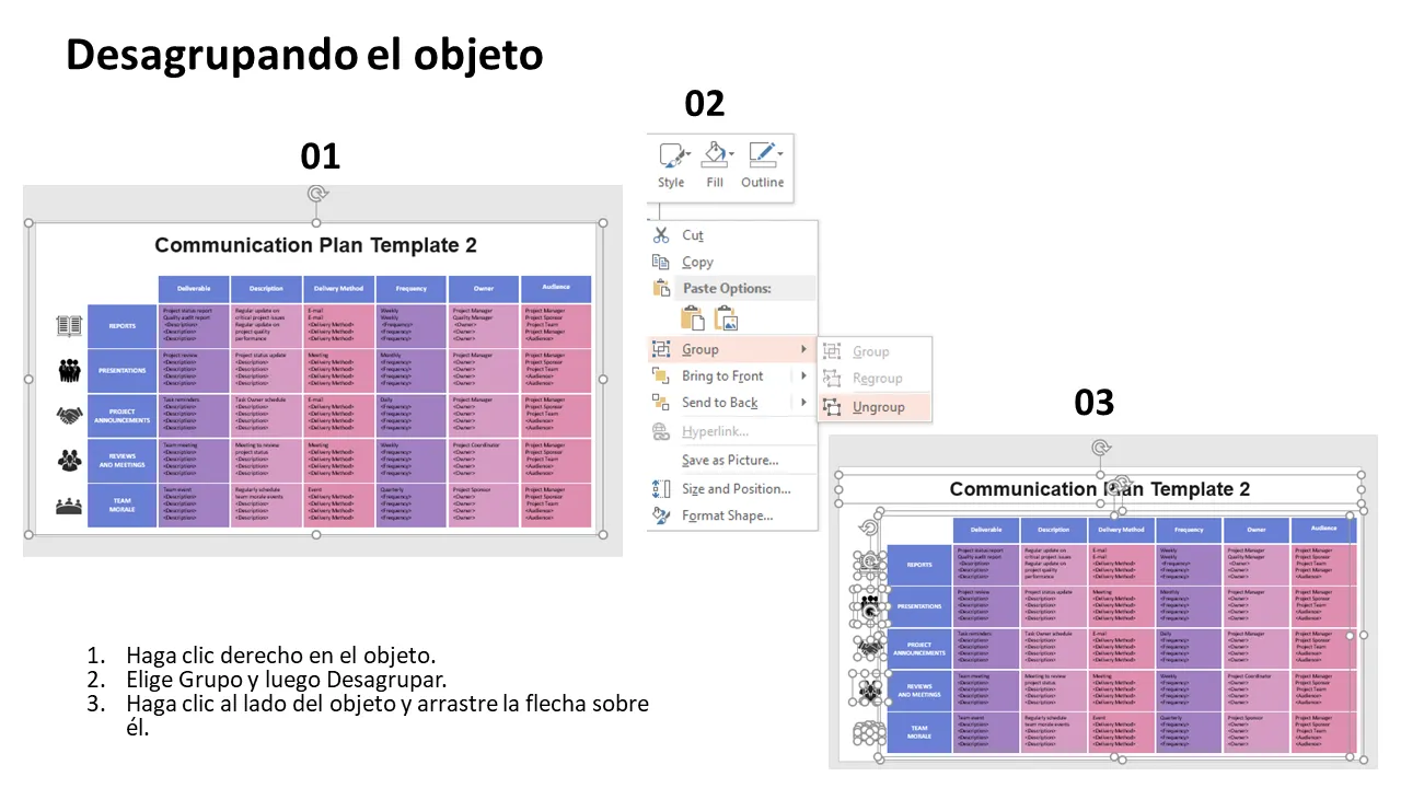 Explicación de PowerPoint de la plantilla del plan de comunicación