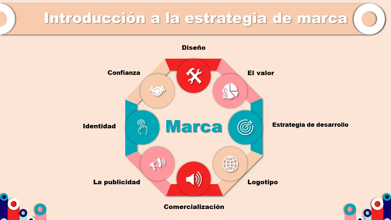 Explicación de la plantilla de PowerPoint sobre estrategia de marca