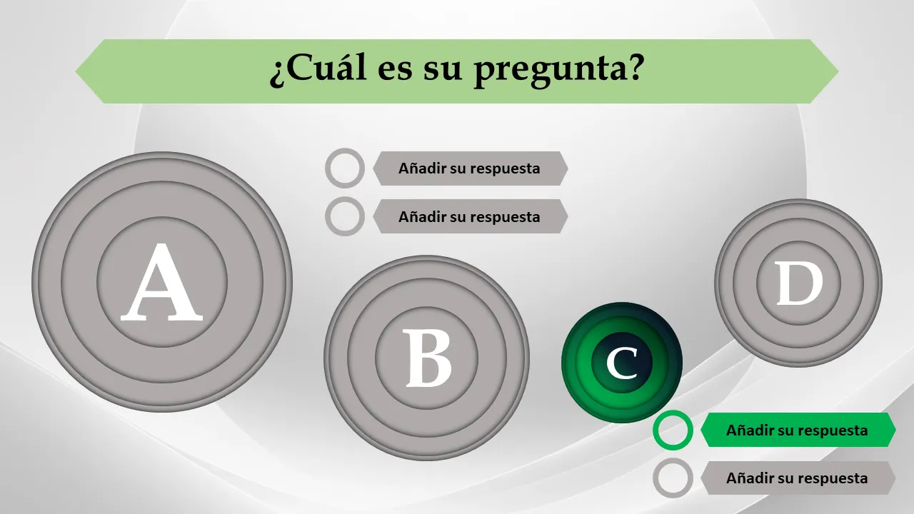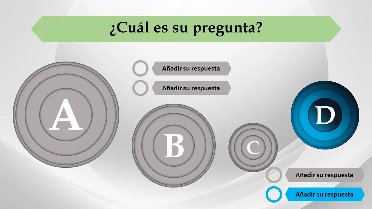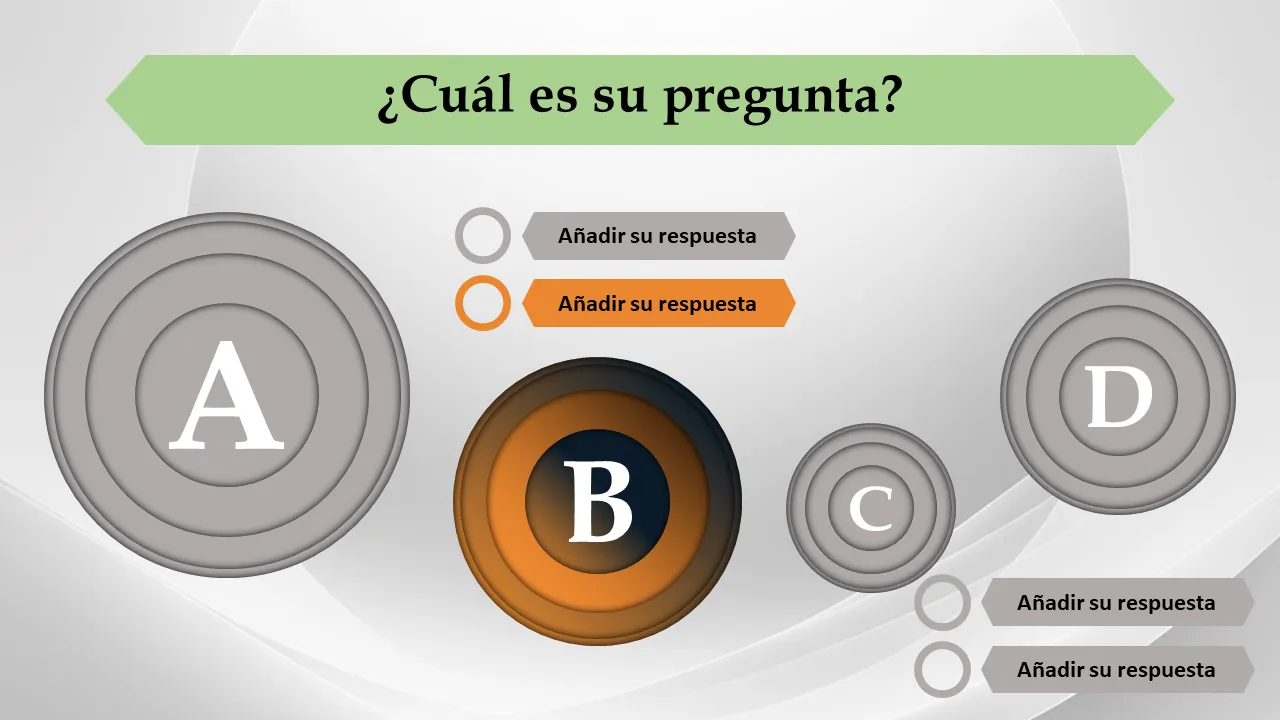 - Cuatro opciones de respuesta distintas por diapositiva para una selección clara del usuario