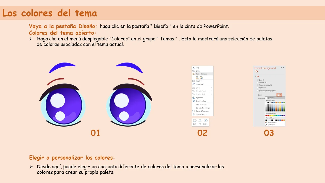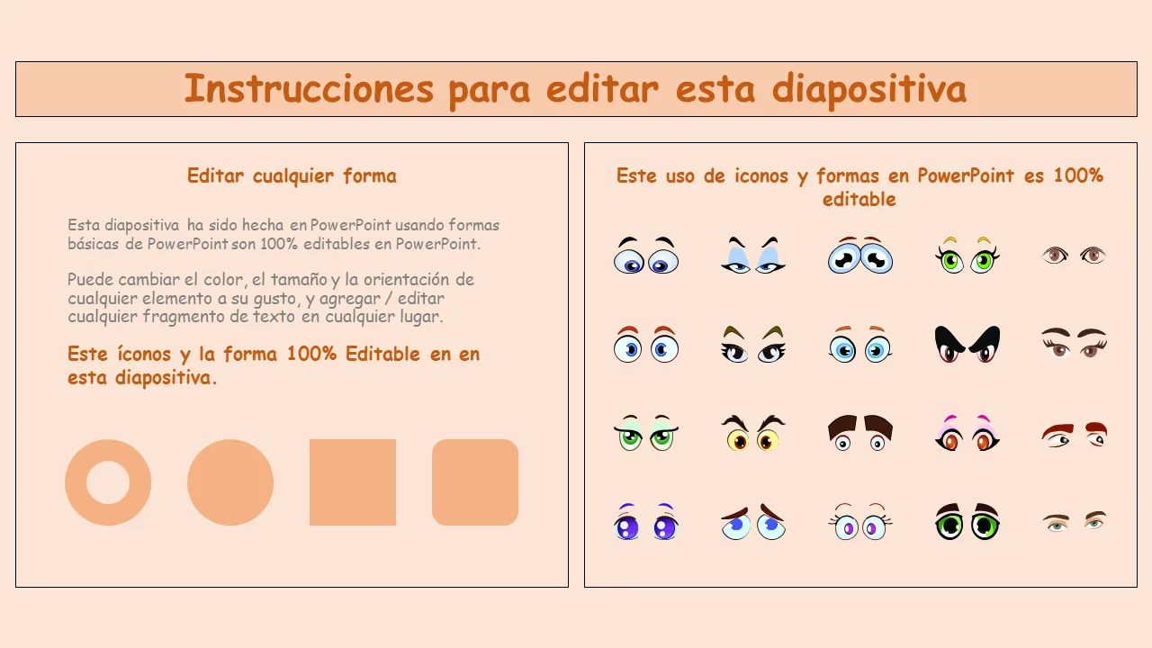 Explicación de la plantilla de PowerPoint con ojos de dibujos animados