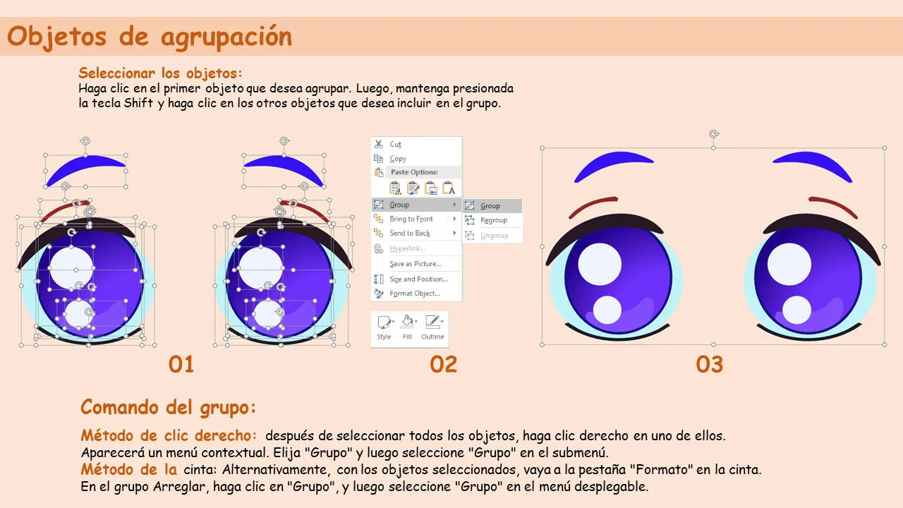 - Compatible con herramientas de edición de PowerPoint estándar que incluyen agrupación con el botón derecho y comandos de cinta