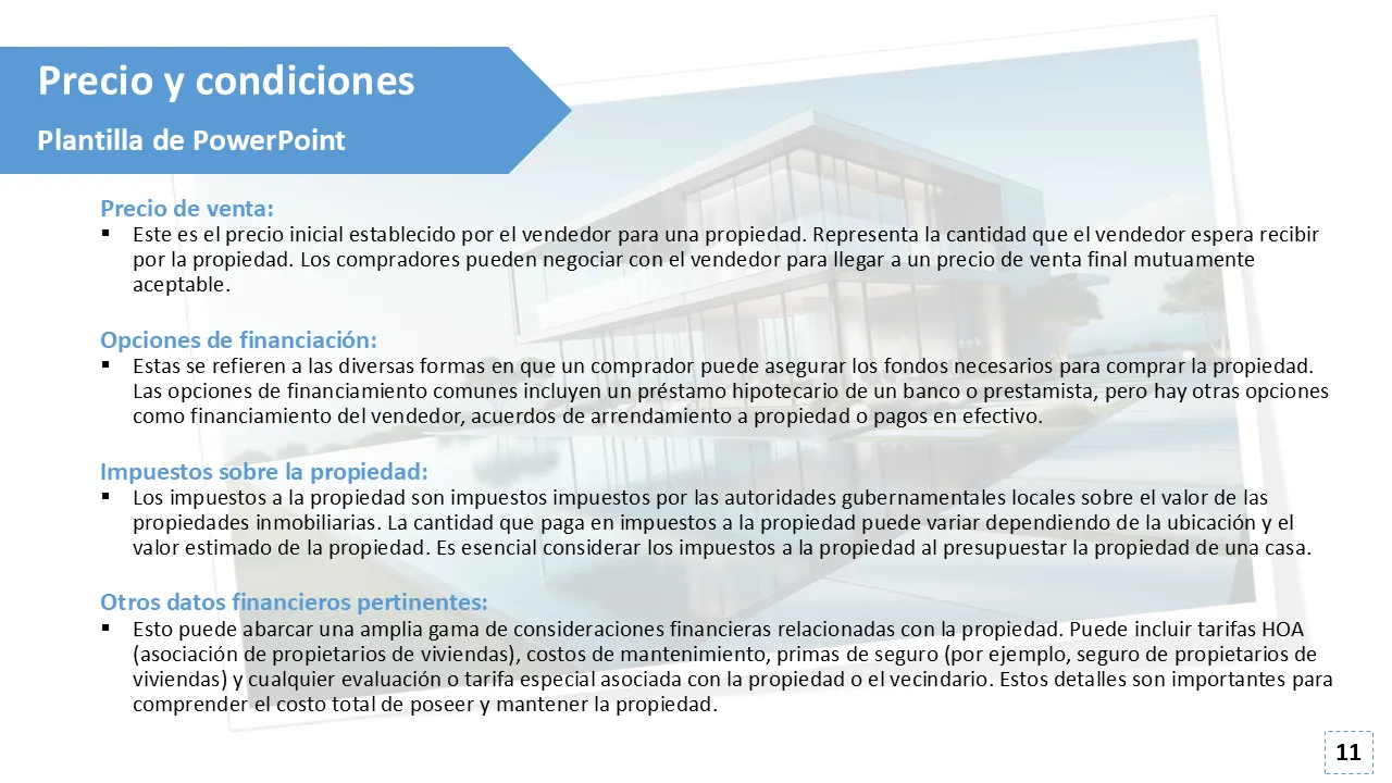 Explicación de la plantilla de PowerPoint para listado de bienes raíces