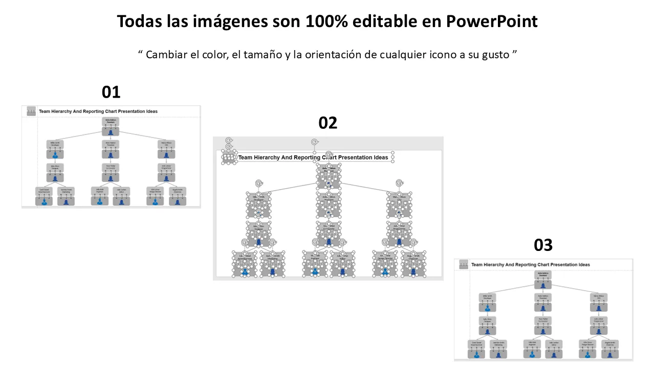 Características de Plantilla de PowerPoint para presentaciones profesionales de jerarquía de equipos y gráficos de informes