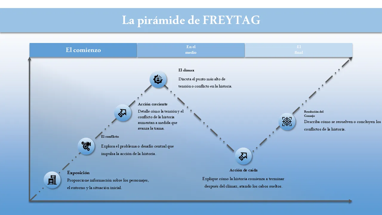 Explicación de la plantilla de PowerPoint pirámide de Freytag