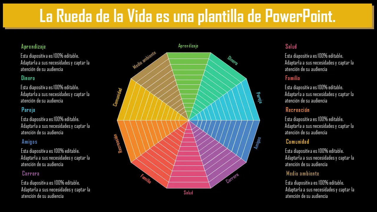 Plantilla de PowerPoint rueda de la vida para presentaciones empresariales