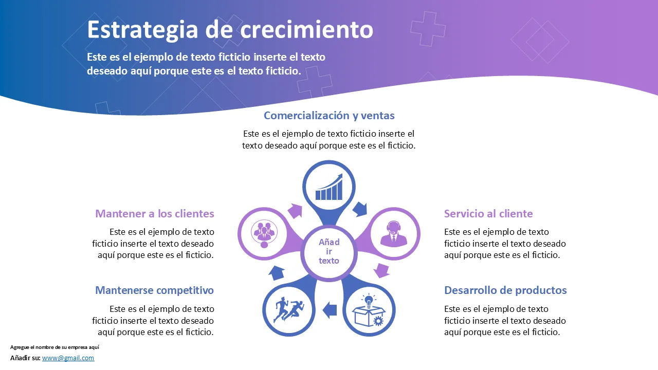 Esta plantilla la utilizan directores de marketing, gerentes de marca y estrategas digitales que presentan planes de campaña, análisis de mercado y estrategias de posicionamiento de marca. Es eficaz para presentaciones de agencias, revisiones trimestrales y presentaciones de marketing de productos. Industrias como la tecnología, las finanzas, la atención médica y la educación se benefician de su claridad y diseño profesional.