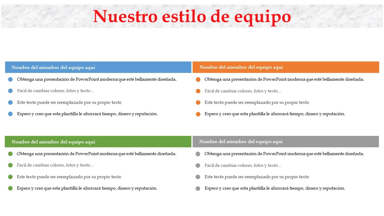 - Lenguaje de diseño coherente en todas las diapositivas para una narración coherente