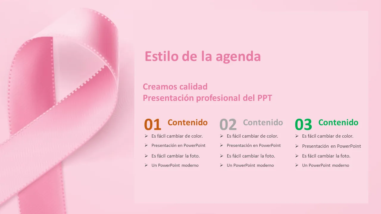 Plantillas de PowerPoint con lazo rosa sobre cáncer de mama