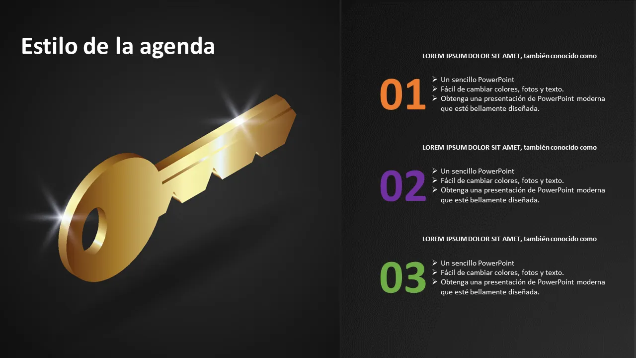 Esta plantilla de PowerPoint visualmente atractiva se centra en la metáfora de un hombre de negocios sosteniendo una llave dorada, que simboliza acceso, control y ventaja estratégica. Diseñado para audiencias profesionales, ofrece una estética elegante y moderna que transmite autoridad y una visión de futuro. La plantilla es ideal para transmitir ideas innovadoras, desbloquear oportunidades o guiar al público a través de decisiones comerciales críticas. Su diseño limpio y sus imágenes simbólicas la hacen perfecta para presentaciones de alto riesgo donde la narración visual importa.