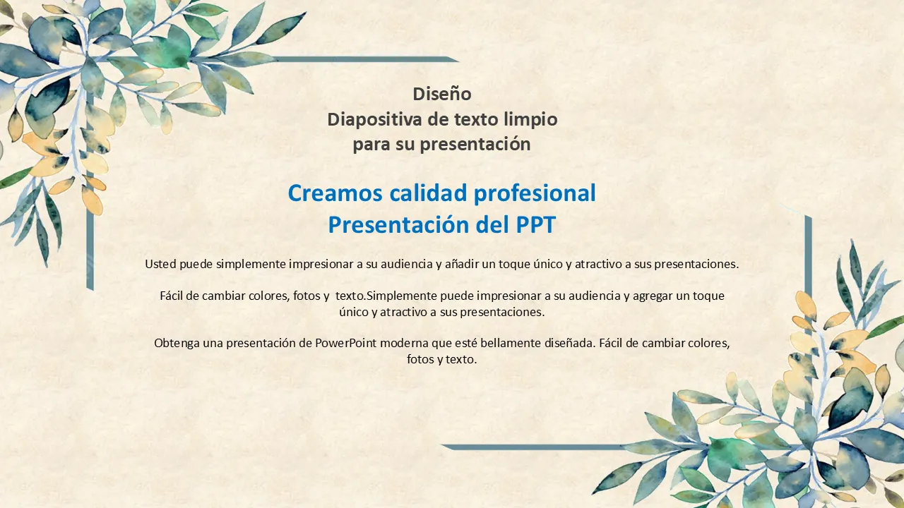 Explicación de las plantillas de PowerPoint con marco de hojas verdes en acuarela