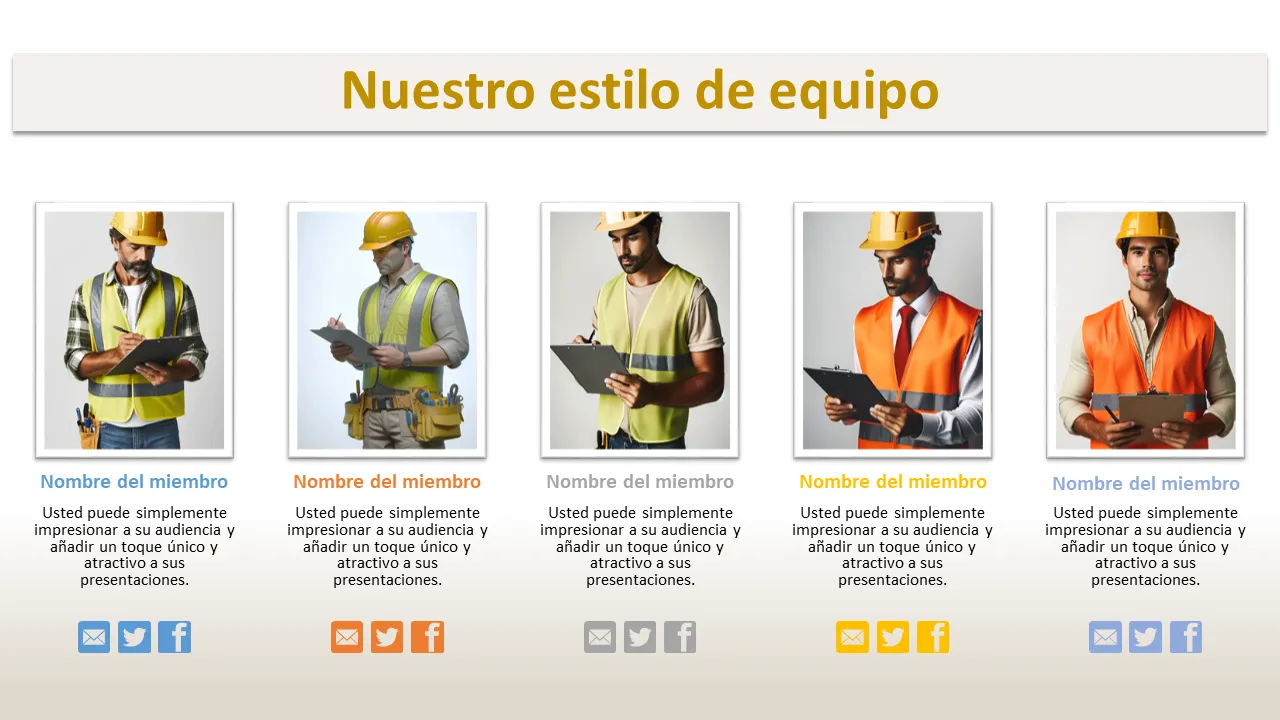 - Múltiples estilos de diseño que incluyen presentación de equipo y visualización de datos
