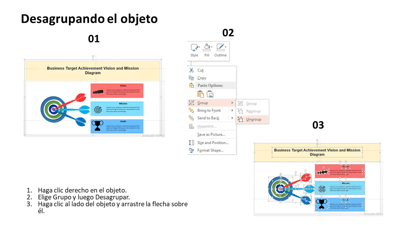Explicación de la plantilla de PowerPoint del diagrama de misión y visión empresarial