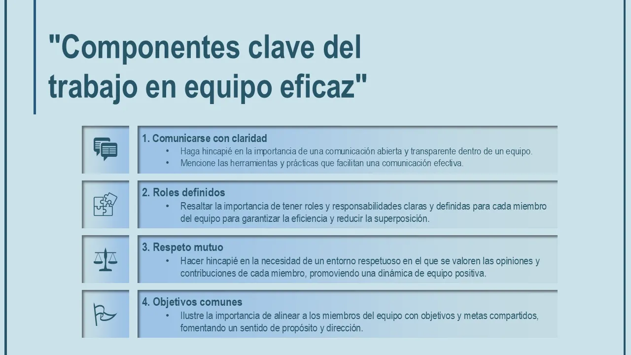 - Lenguaje de diseño coherente en todas las diapositivas para una narración coherente