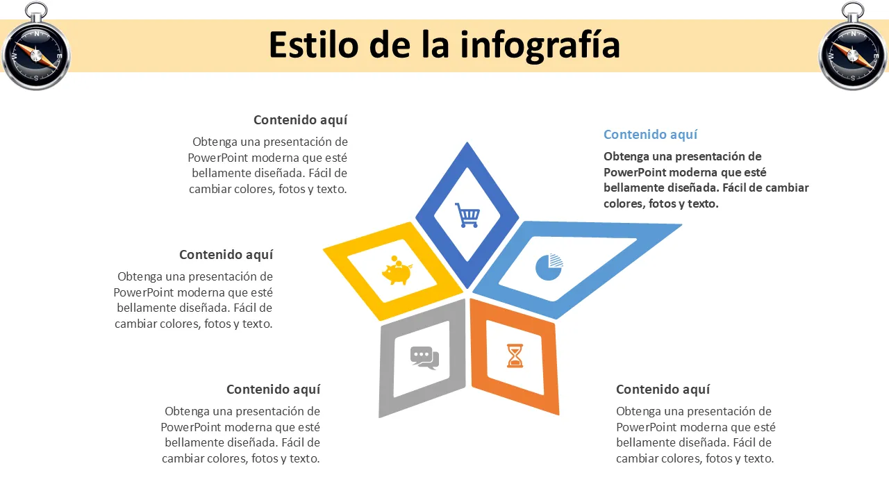 - Lenguaje de diseño coherente en todas las diapositivas para una narración coherente