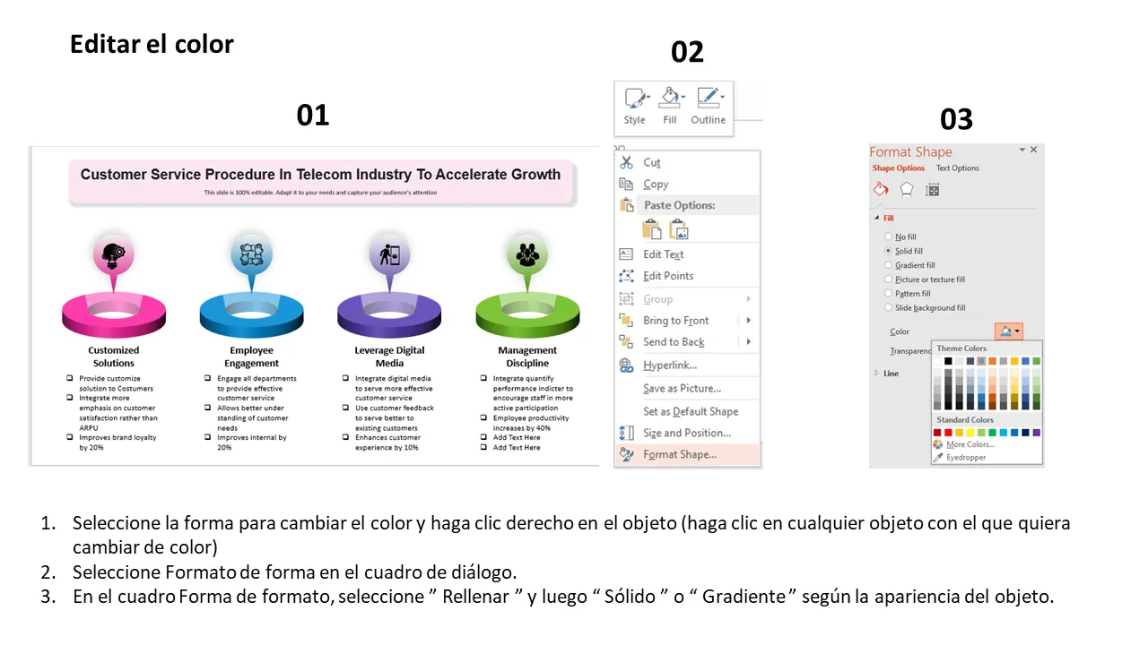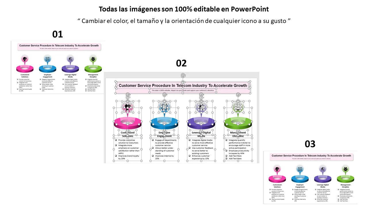- Diseño 100% editable para adaptarse a flujos de trabajo de servicio al cliente específicos de la empresa