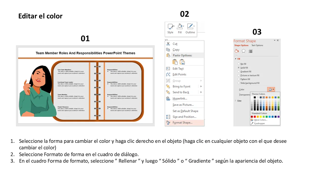 Características de Roles y responsabilidades de los miembros del equipo Temas de PowerPoint Plantilla de PowerPoint para presentaciones profesionales