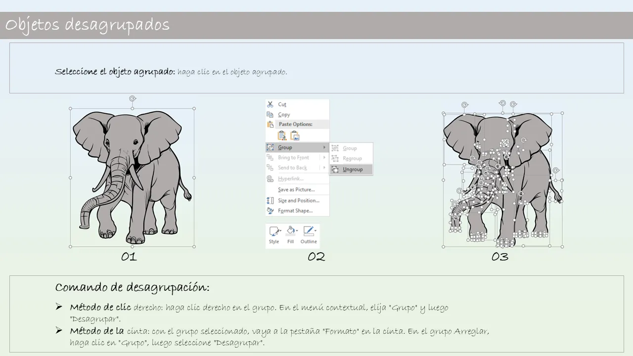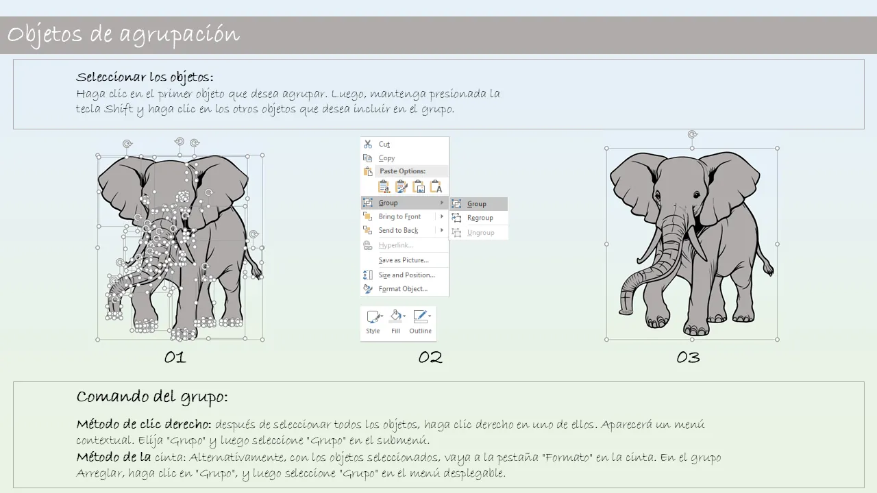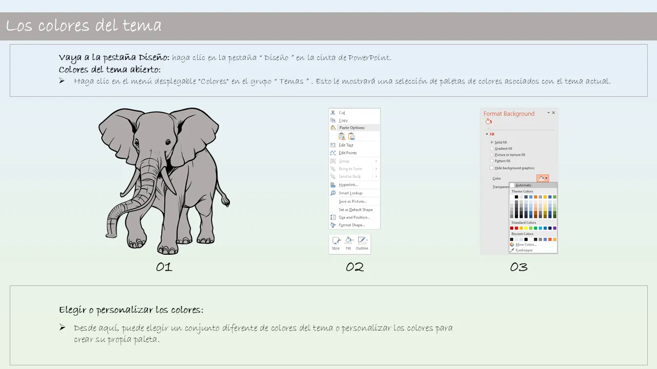- Lenguaje de diseño coherente en todas las diapositivas para una narración coherente