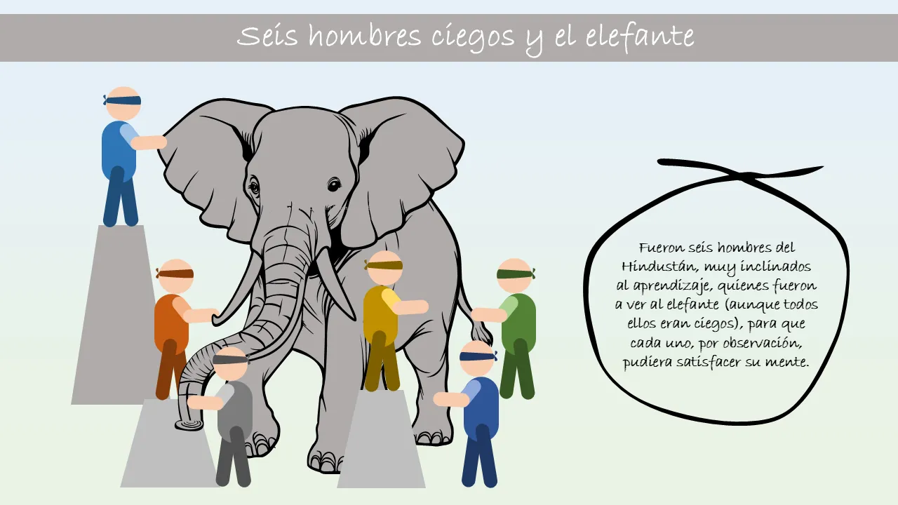 Explicación de la metáfora de los seis ciegos y el elefante