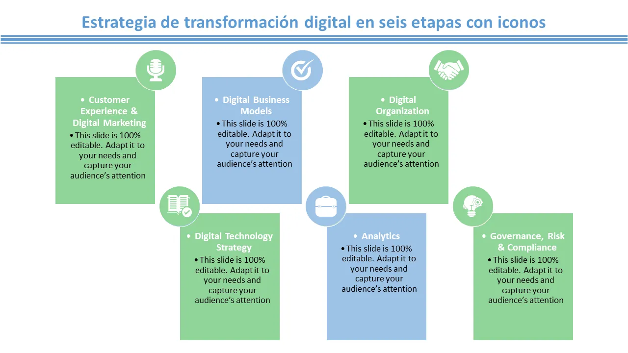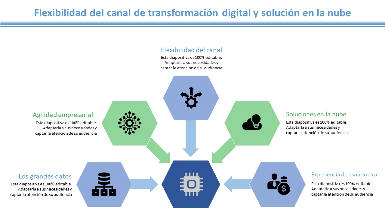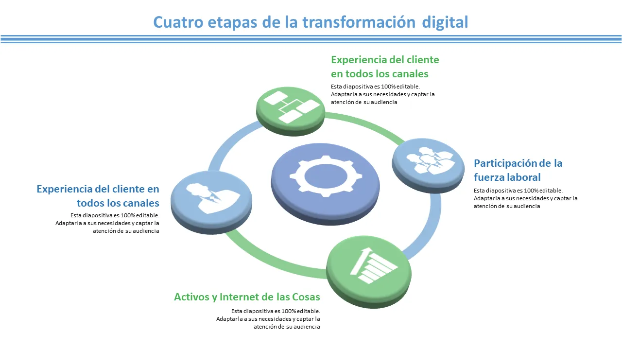 Explicación de la plantilla de PowerPoint sobre estrategia de transformación digital